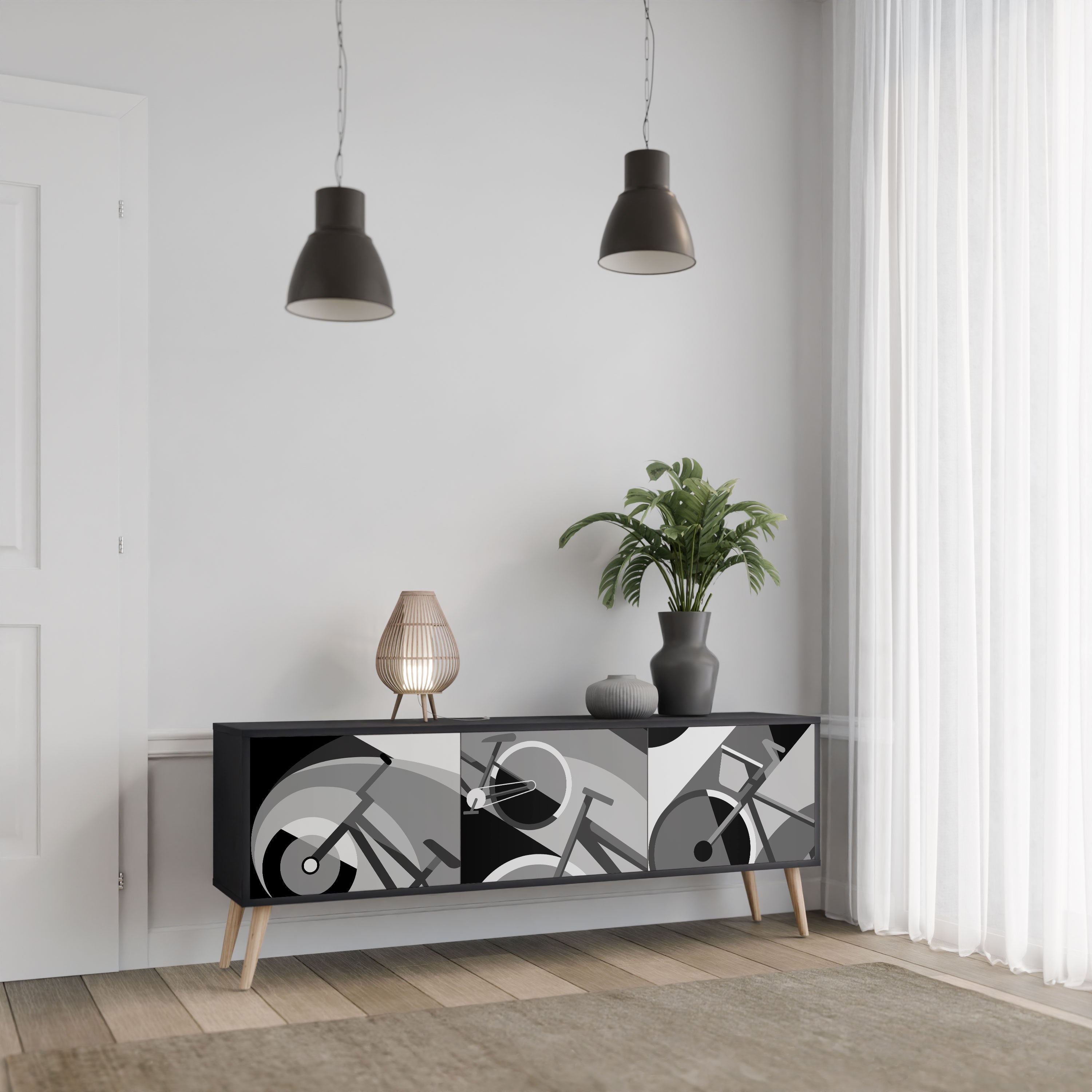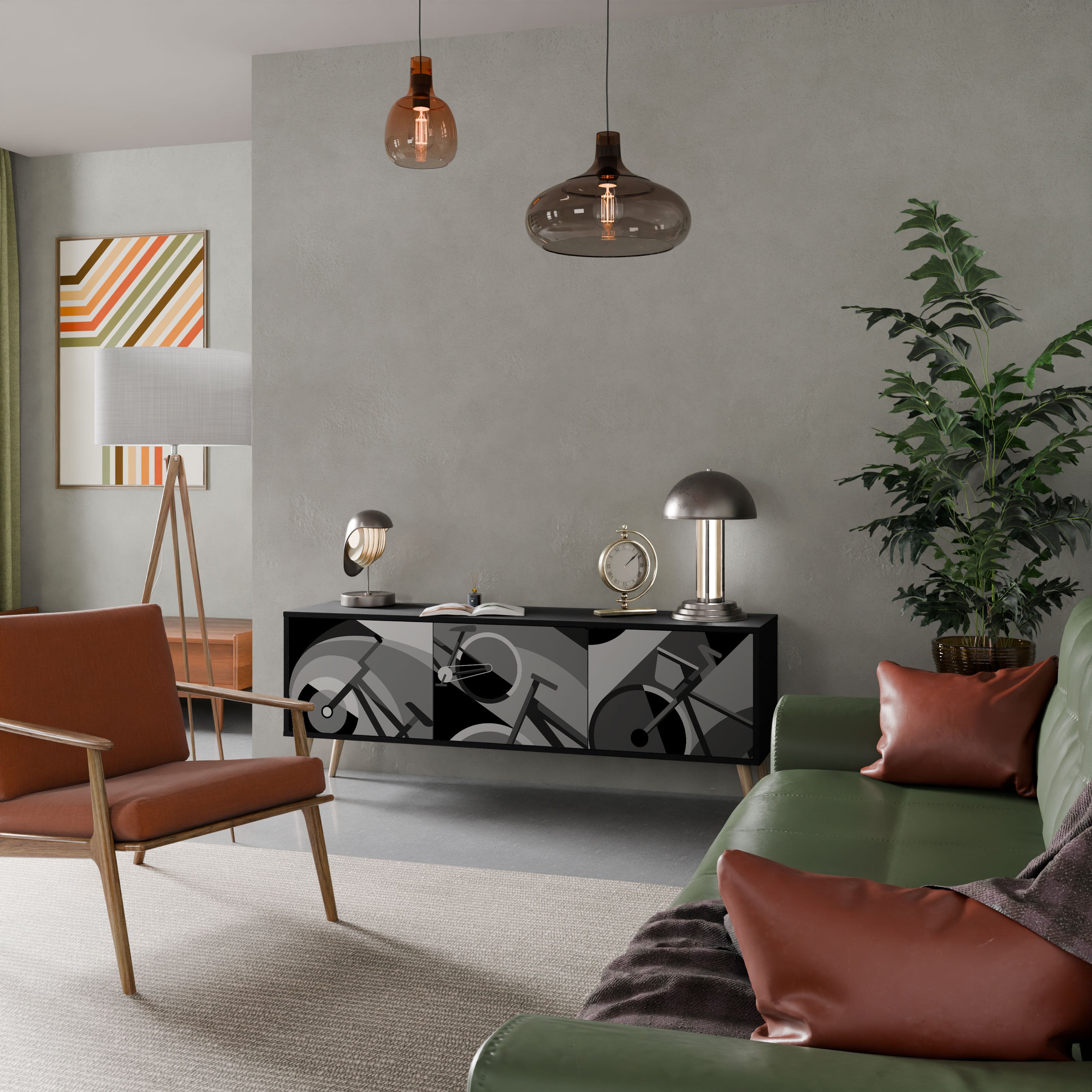 Czarny korpus szafki tworzy wyrazisty, nowoczesny akcent, który świetnie komponuje się z industrialnymi i minimalistycznymi aranżacjami. Fronty z designerskim nadrukiem dodają charakteru i niepowtarzalności, czyniąc mebel nie tylko praktycznym, ale także wyjątkowym elementem dekoracyjnym.