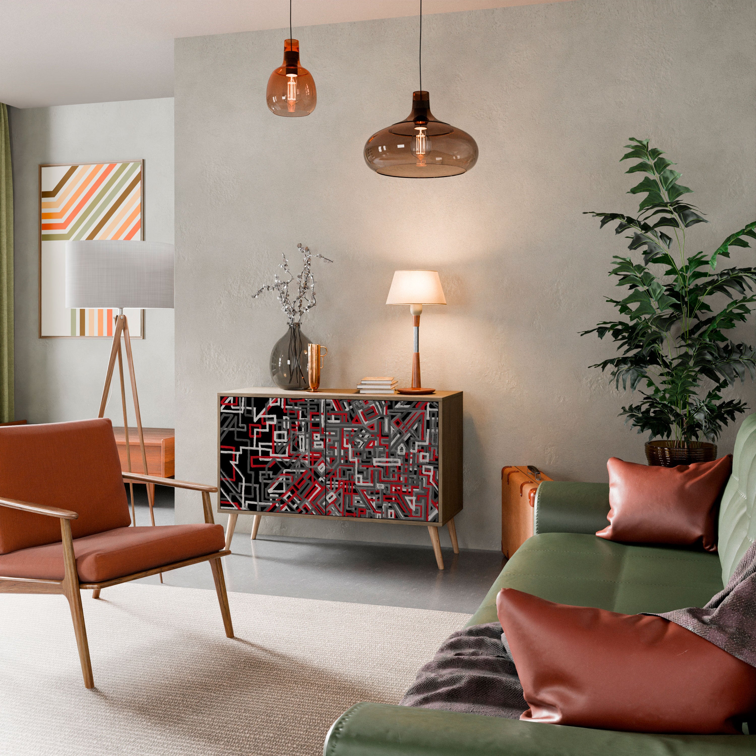 Komoda nie tylko pięknie prezentuje się jako samodzielny mebel, ale także świetnie sprawdza się jako stolik pod telewizor. Obszerne wnętrze pozwala schować sprzęt elektroniczny, książki czy inne przedmioty, utrzymując przestrzeń wolną od bałaganu. Dekor dębu dodaje wnętrzu ciepła, tworząc przytulną atmosferę, idealną zarówno dla miłośników nowoczesności, jak i tradycji.