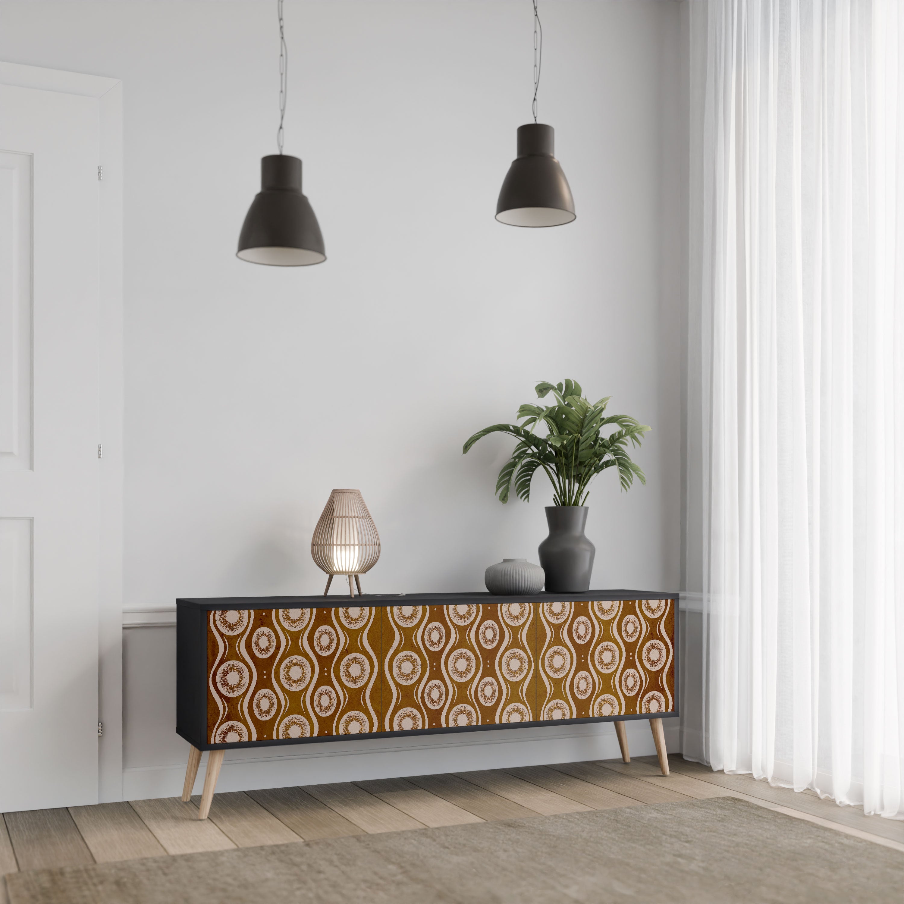 Czarny korpus szafki tworzy wyrazisty, nowoczesny akcent, który świetnie komponuje się z industrialnymi i minimalistycznymi aranżacjami. Fronty z designerskim nadrukiem dodają charakteru i niepowtarzalności, czyniąc mebel nie tylko praktycznym, ale także wyjątkowym elementem dekoracyjnym.