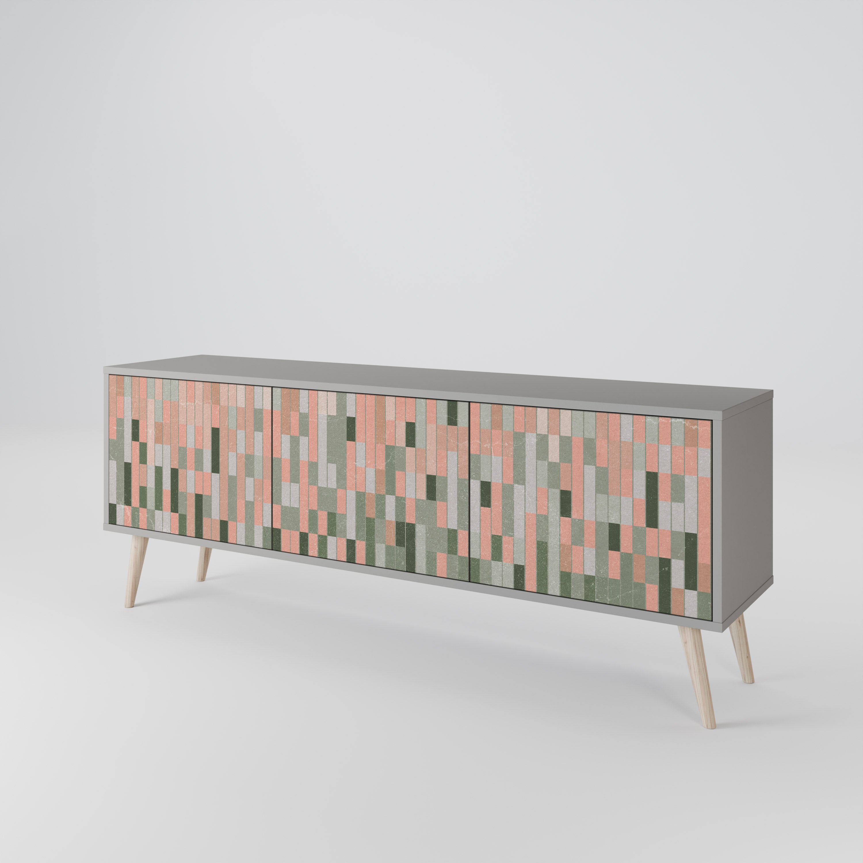 Szary korpus szafki tworzy subtelny, nowoczesny akcent, który świetnie komponuje się z industrialnymi i minimalistycznymi aranżacjami. Fronty z designerskim nadrukiem dodają charakteru i niepowtarzalności, czyniąc mebel nie tylko praktycznym, ale także wyjątkowym elementem dekoracyjnym.