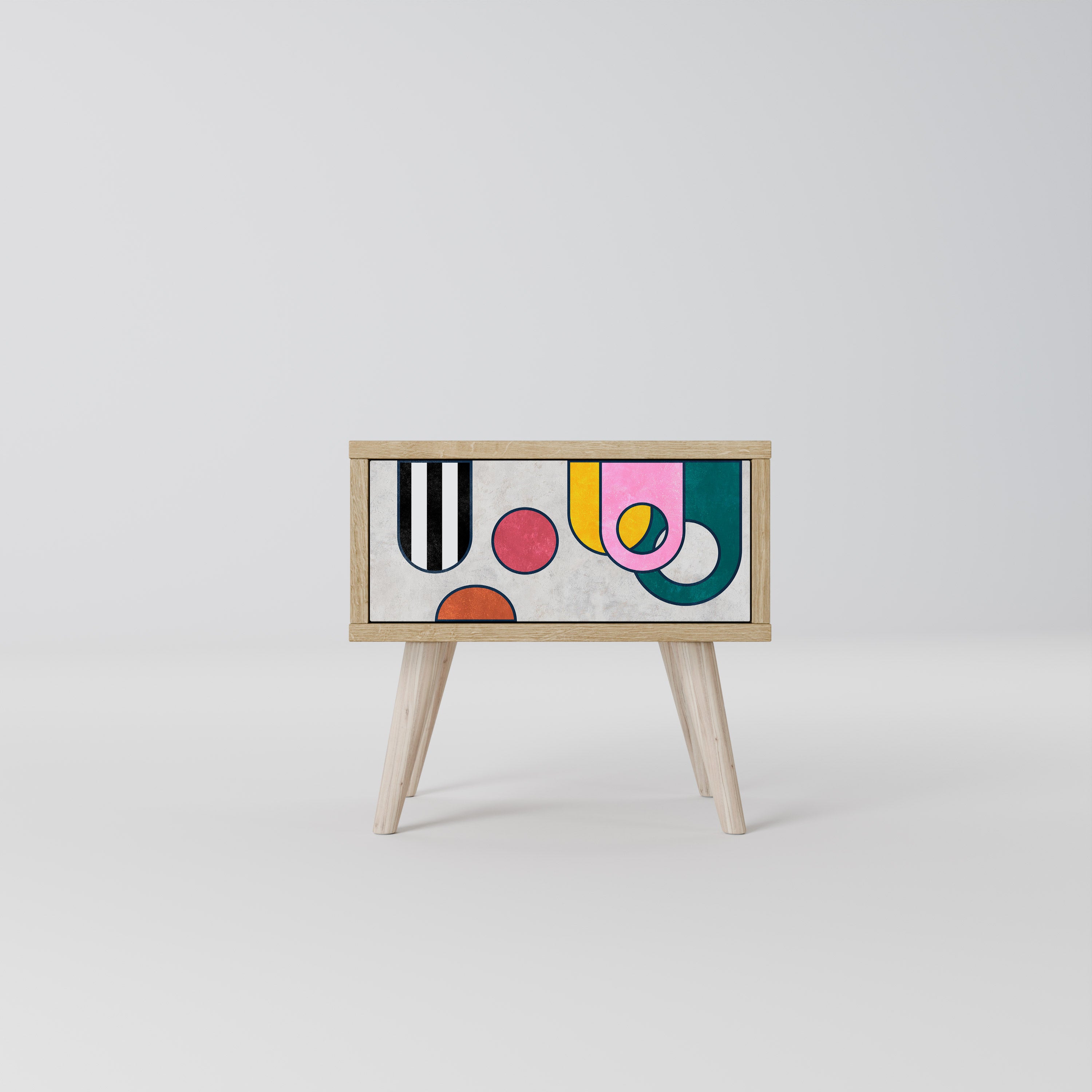 Odkryj funkcjonalność i elegancję w kompaktowym wydaniu dzięki naszej szafce nocnej z szufladą. Ten praktyczny i stylowy mebel doskonale łączy naturalne piękno drewna z nowoczesnym designem na froncie szuflady, tworząc harmonijny element każdej sypialni.