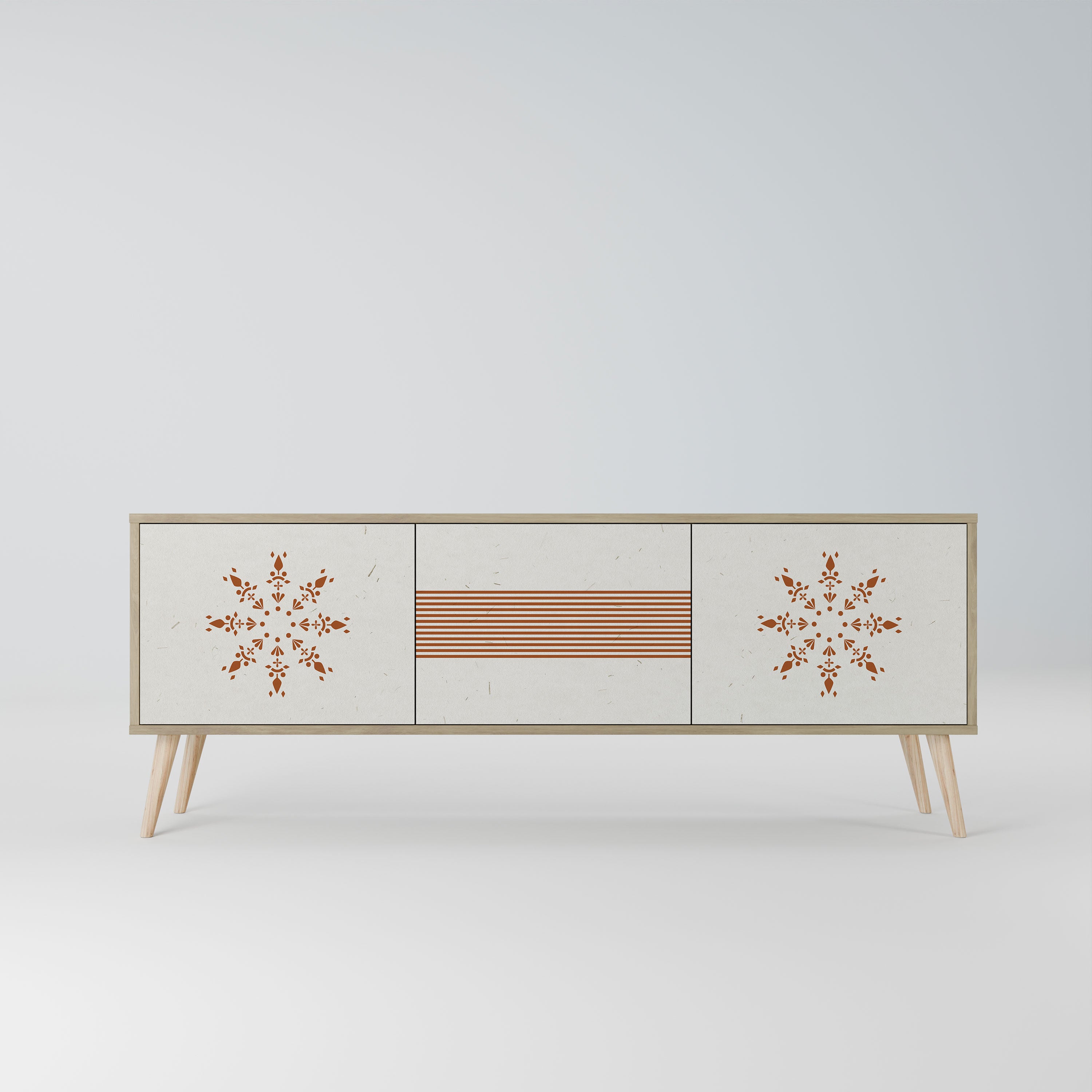 Odkryj idealne rozwiązanie do przechowywania i organizacji przestrzeni z naszą 3-drzwiową szafką pod telewizor. Wykonana z trwałych materiałów, łącząc drewniane nóżki z laminowanym korpusem, ta szafka jest zarówno stylowa, jak i funkcjonalna. Drewniane drzwiczki z atrakcyjnym nadrukiem dodają elegancji, czyniąc ją doskonałym wyborem dla każdego wnętrza.