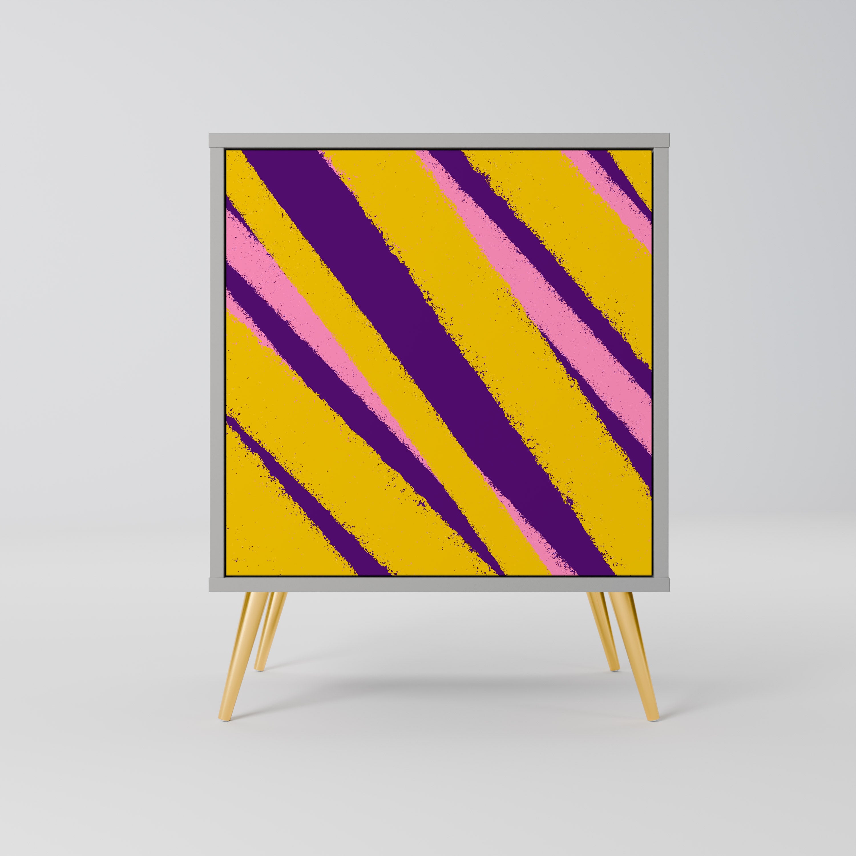 Ten kompaktowy, a zarazem niezwykle elegancki mebel zachwyca minimalistycznym designem, który idealnie wpisuje się zarówno w nowoczesne, jak i klasyczne aranżacje. Stonowana szarość korpusu nadaje meblowi subtelny, a zarazem wyrazisty charakter, a fronty z unikalnym nadrukiem dodają artystycznego wyrazu.