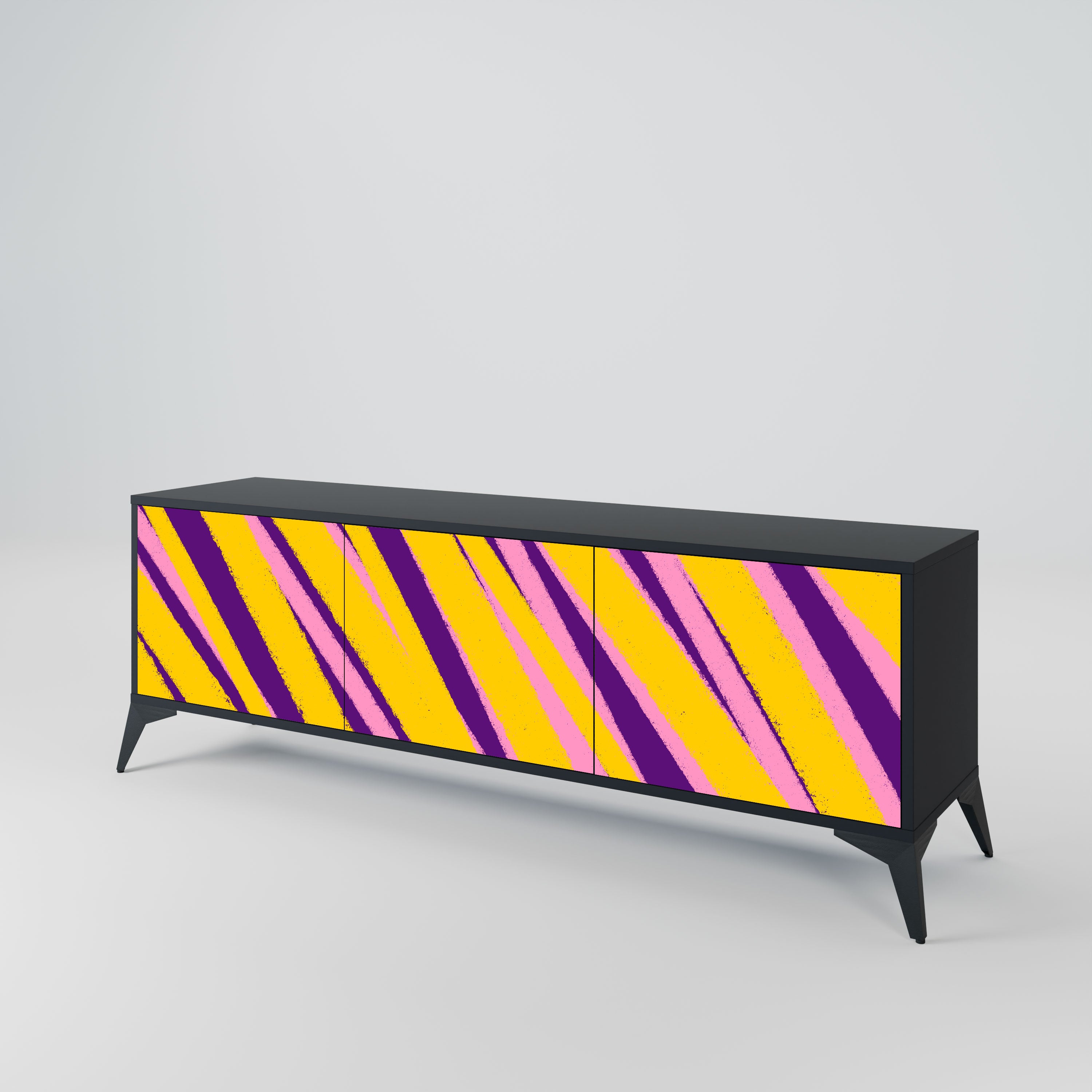 Czarny korpus szafki tworzy wyrazisty, nowoczesny akcent, który świetnie komponuje się z industrialnymi i minimalistycznymi aranżacjami. Fronty z designerskim nadrukiem dodają charakteru i niepowtarzalności, czyniąc mebel nie tylko praktycznym, ale także wyjątkowym elementem dekoracyjnym.