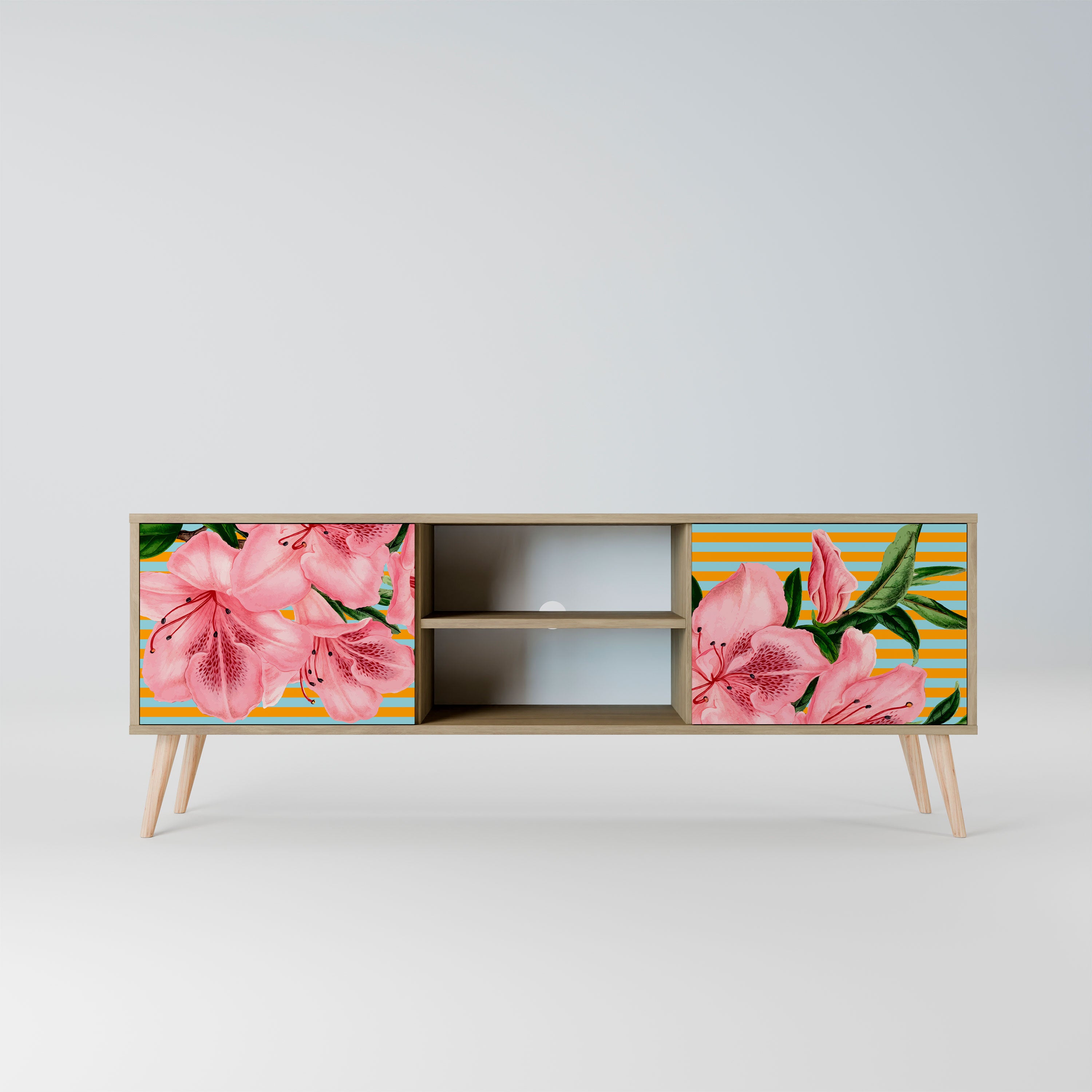 Zapraszamy do odkrycia naszej 2-drzwiowej komody pod TV, która łączy w sobie prostotę z wyjątkowym stylem. Wykonana z najwyższej jakości materiałów, ta elegancka szafka z dekorem dębu z drewnianymi drzwiczkami z nadrukiem doskonale dopełni każdy nowoczesny salon.