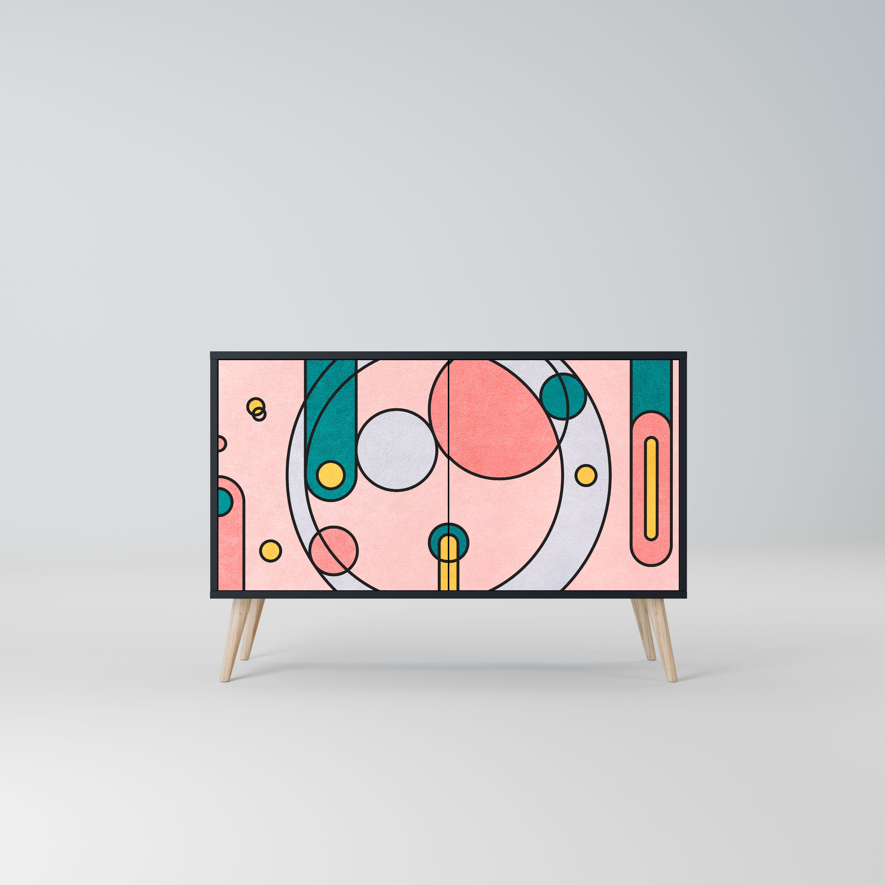 Elegancja i funkcjonalność w jednym meblu – nasza 2-drzwiowa komoda z czarnym korpusem to idealne rozwiązanie dla miłośników stylowych, nowoczesnych wnętrz. Czerń korpusu podkreśla wyrazisty charakter mebla, a fronty z unikalnym nadrukiem dodają artystycznego wyrazu. Doskonale sprawdzi się w salonie, sypialni czy gabinecie, zarówno w aranżacjach nowoczesnych, jak i industrialnych.
