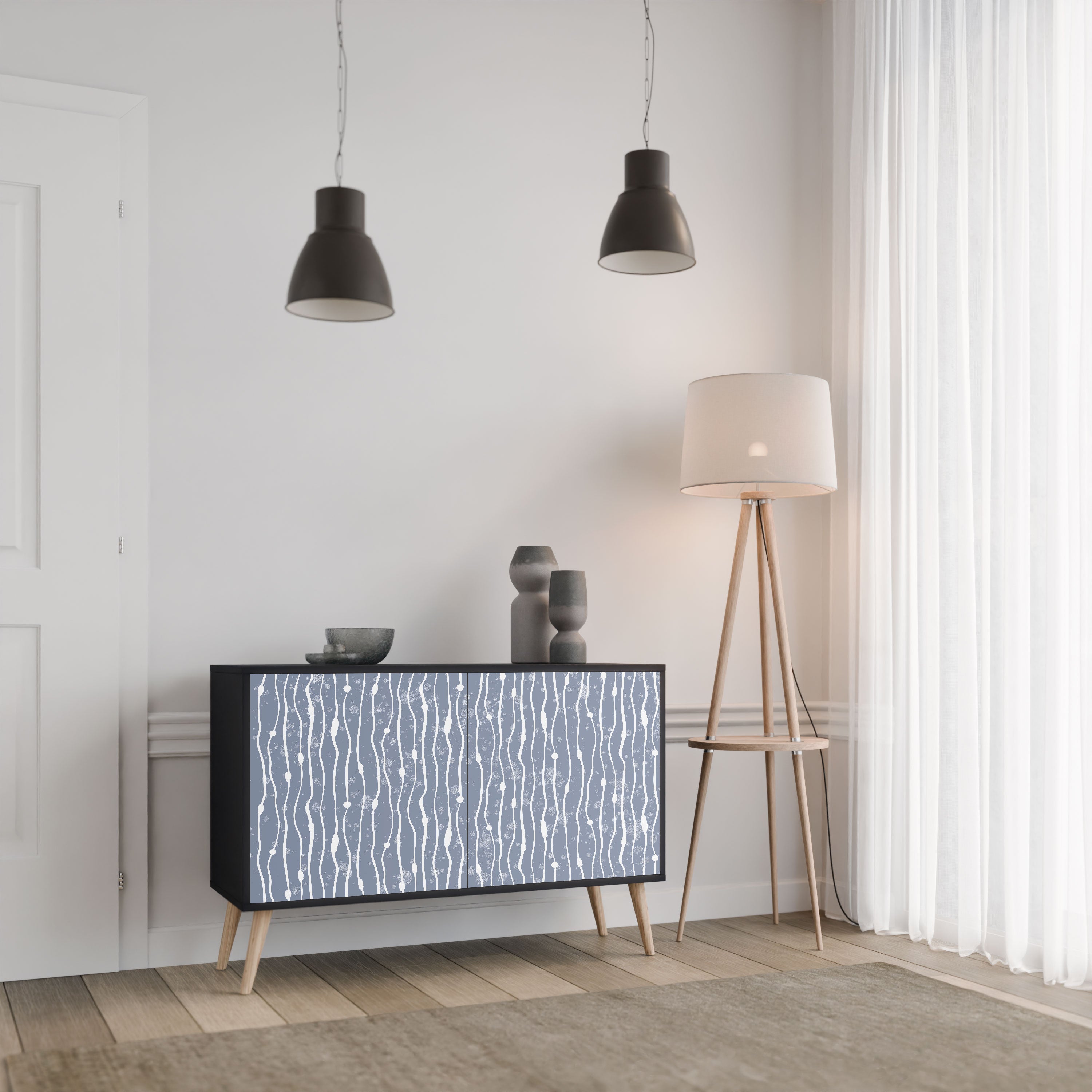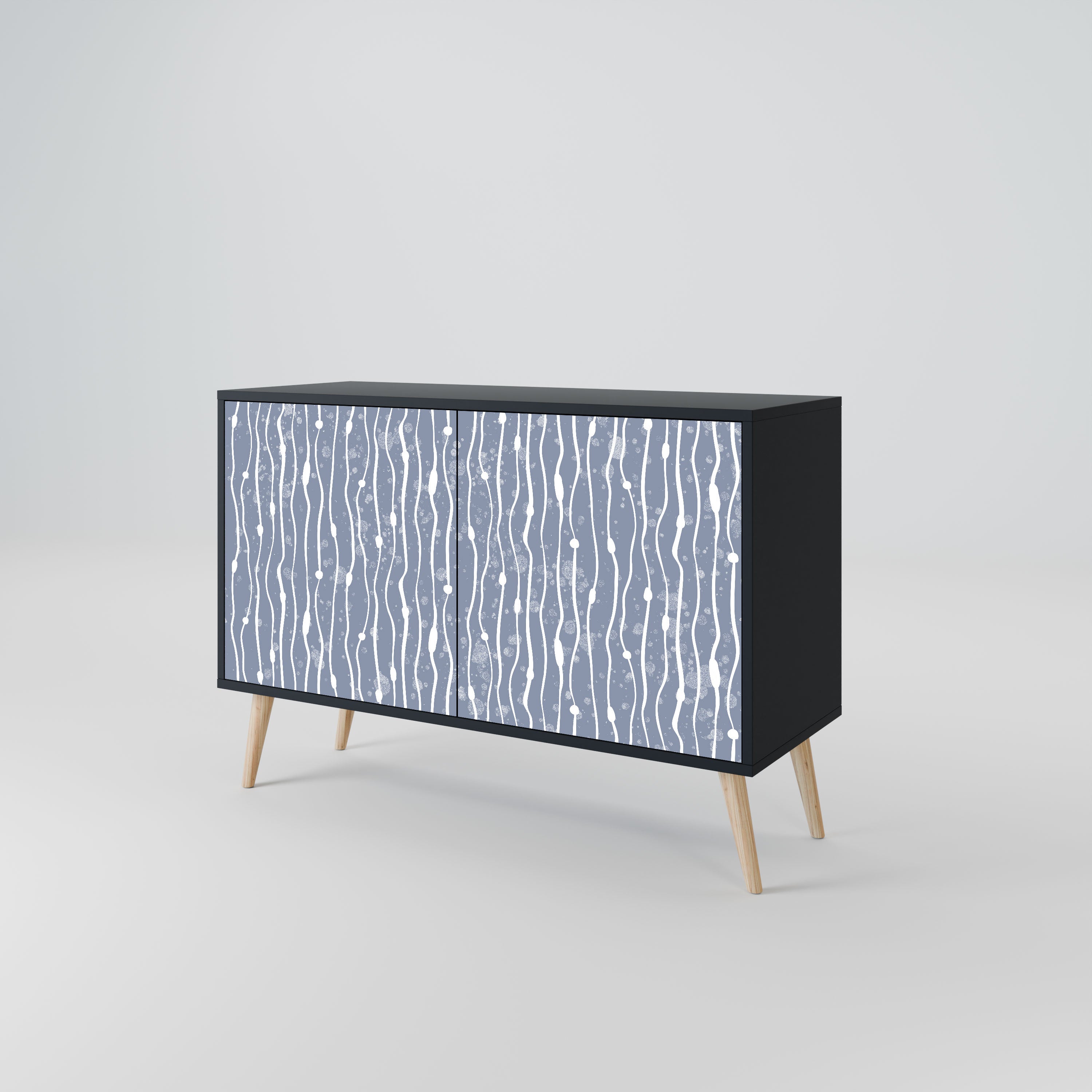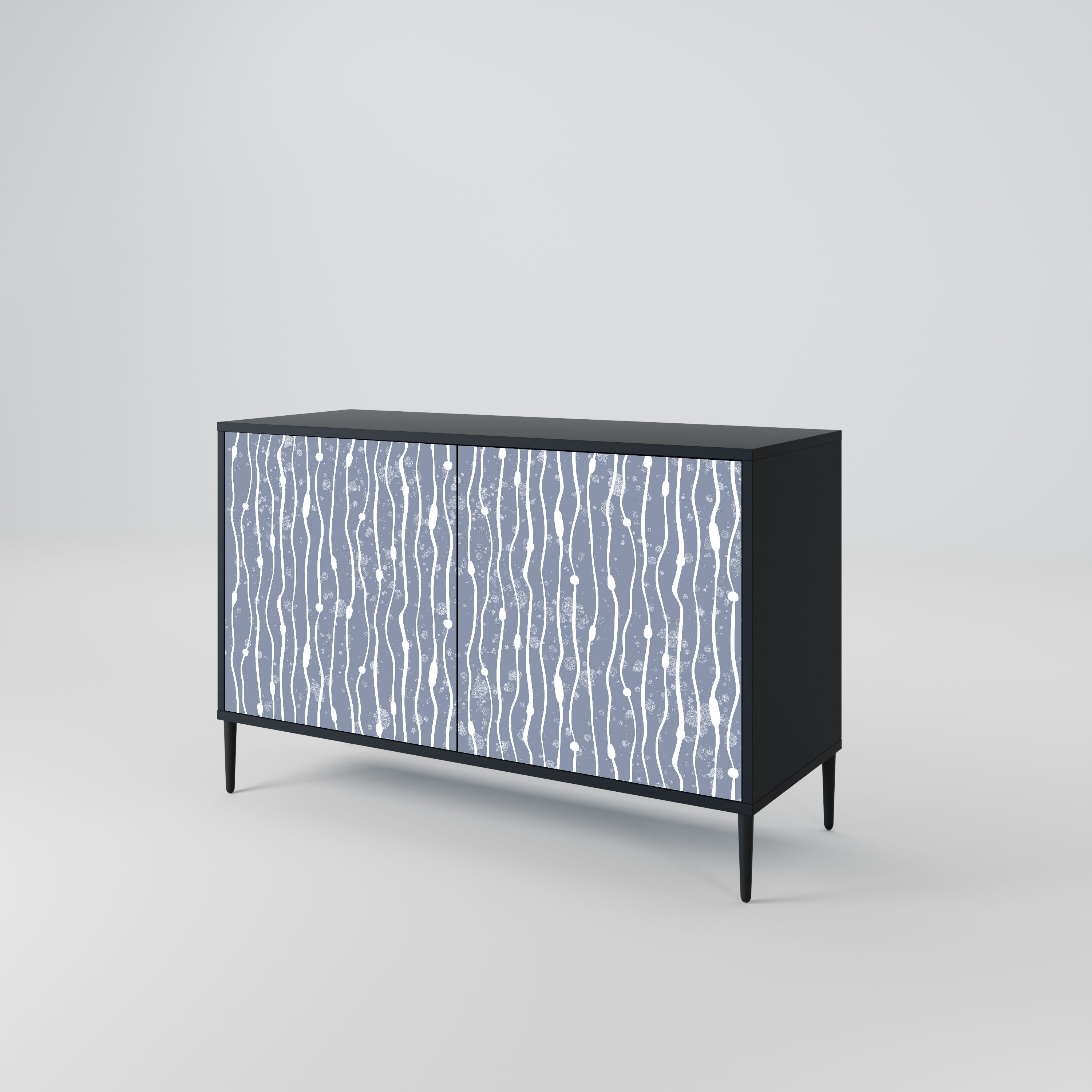 Elegancja i funkcjonalność w jednym meblu – nasza 2-drzwiowa komoda z czarnym korpusem to idealne rozwiązanie dla miłośników stylowych, nowoczesnych wnętrz. Czerń korpusu podkreśla wyrazisty charakter mebla, a fronty z unikalnym nadrukiem dodają artystycznego wyrazu. Doskonale sprawdzi się w salonie, sypialni czy gabinecie, zarówno w aranżacjach nowoczesnych, jak i industrialnych.