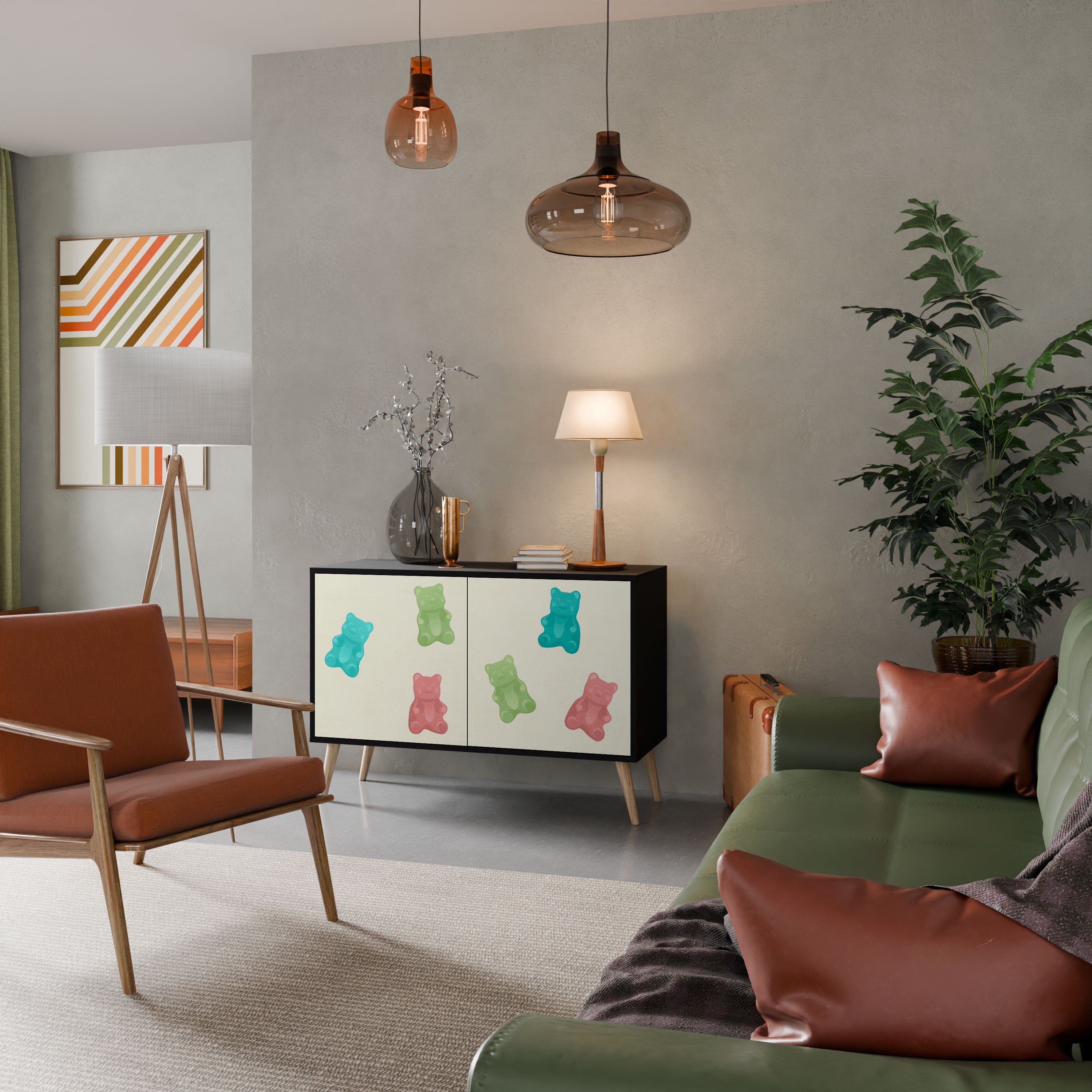 Elegancja i funkcjonalność w jednym meblu – nasza 2-drzwiowa komoda z czarnym korpusem to idealne rozwiązanie dla miłośników stylowych, nowoczesnych wnętrz. Czerń korpusu podkreśla wyrazisty charakter mebla, a fronty z unikalnym nadrukiem dodają artystycznego wyrazu. Doskonale sprawdzi się w salonie, sypialni czy gabinecie, zarówno w aranżacjach nowoczesnych, jak i industrialnych.