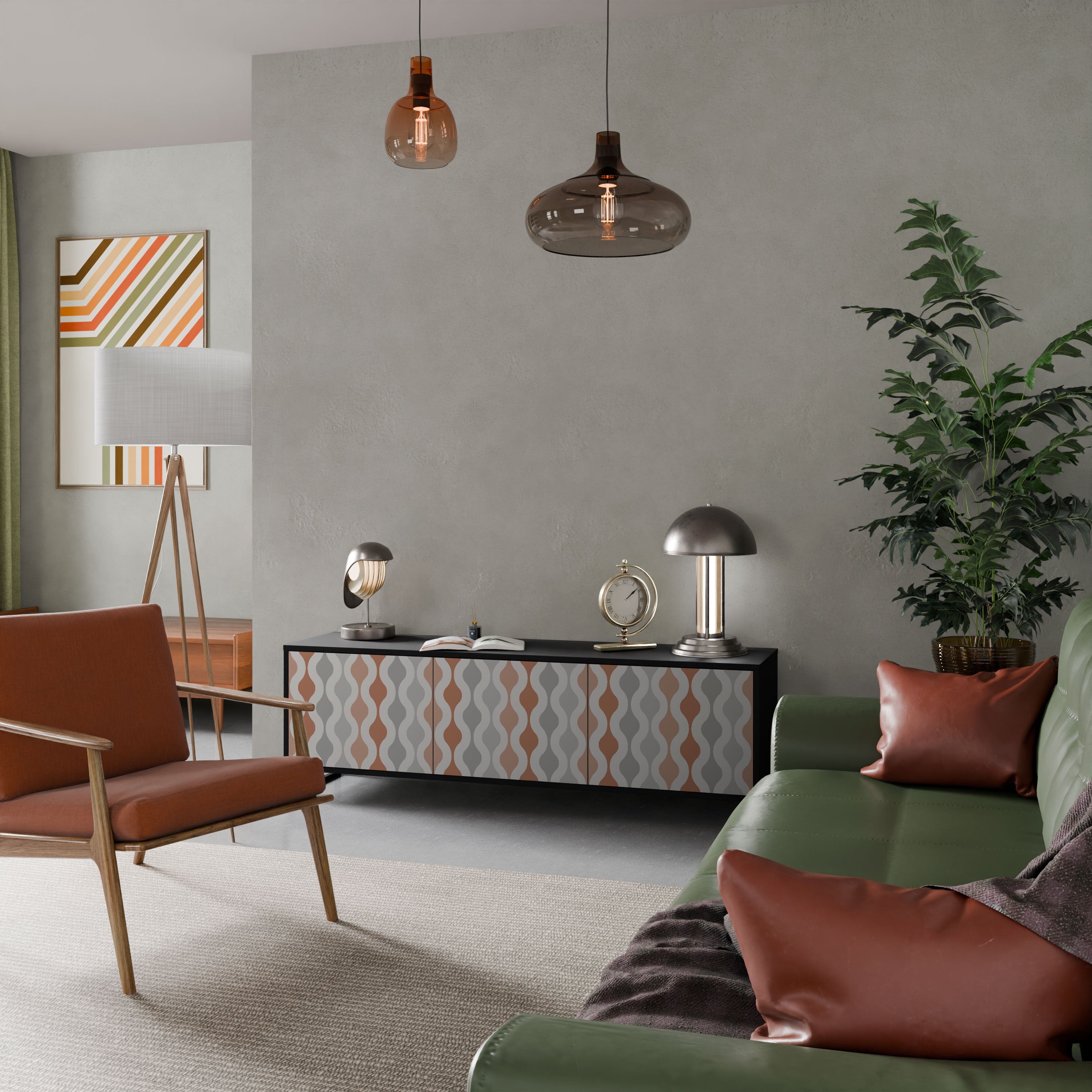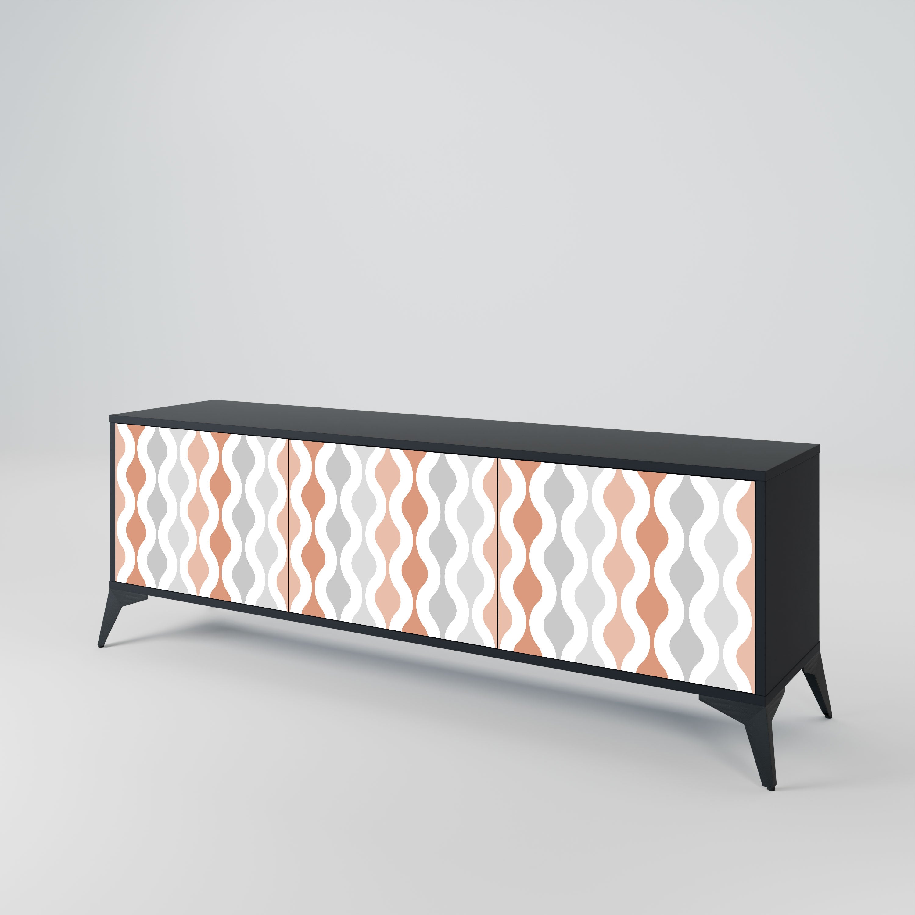 Czarny korpus szafki tworzy wyrazisty, nowoczesny akcent, który świetnie komponuje się z industrialnymi i minimalistycznymi aranżacjami. Fronty z designerskim nadrukiem dodają charakteru i niepowtarzalności, czyniąc mebel nie tylko praktycznym, ale także wyjątkowym elementem dekoracyjnym.