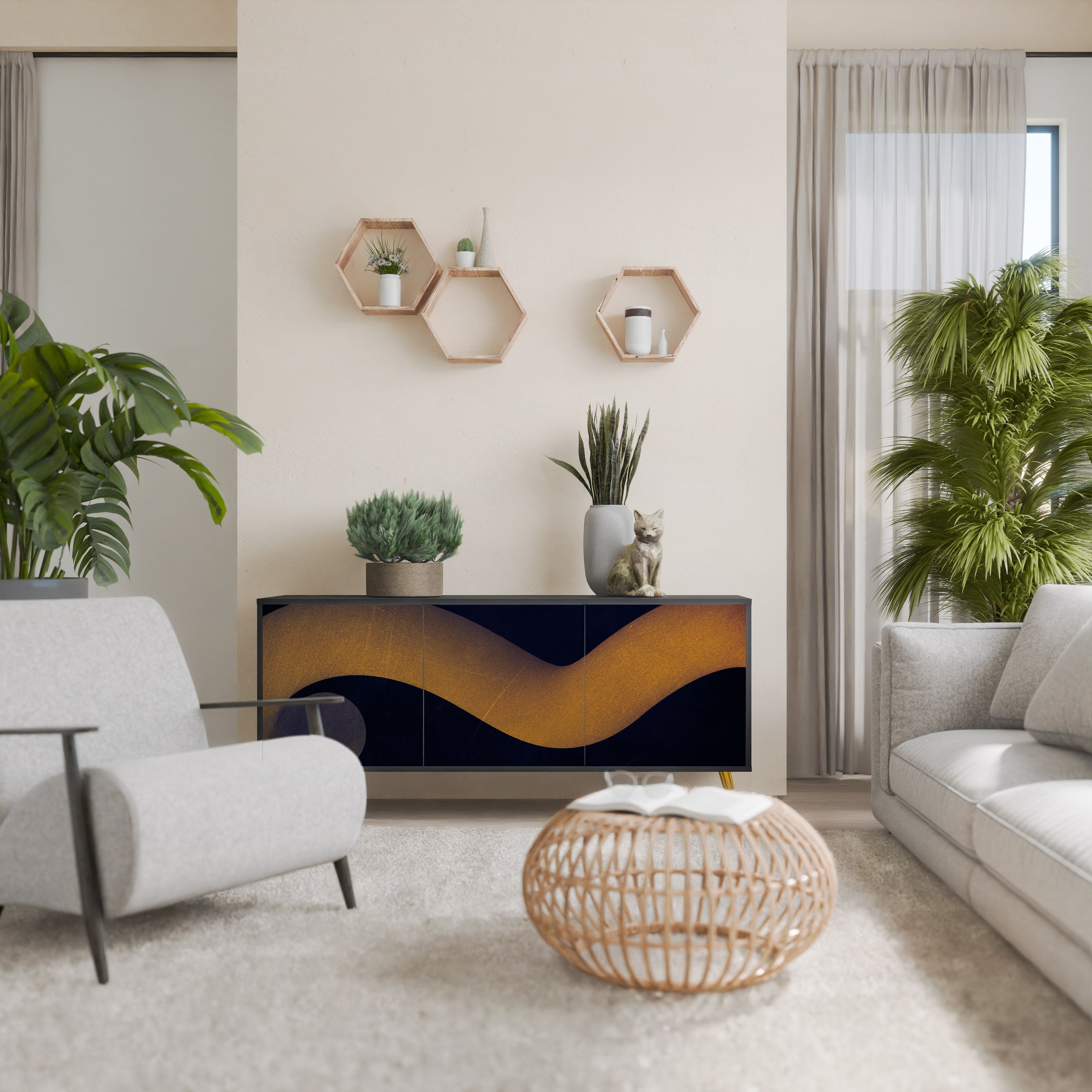 Elegancja i funkcjonalność w jednym meblu – nasza 3-drzwiowa komoda w czarnym korpusie to idealne rozwiązanie dla miłośników stylowych, nowoczesnych wnętrz. Czerń korpusu podkreśla wyrazisty charakter mebla, a fronty z unikalnym nadrukiem dodają artystycznego wyrazu. Doskonale sprawdzi się w salonie, sypialni czy gabinecie, zarówno w aranżacjach nowoczesnych, jak i industrialnych.