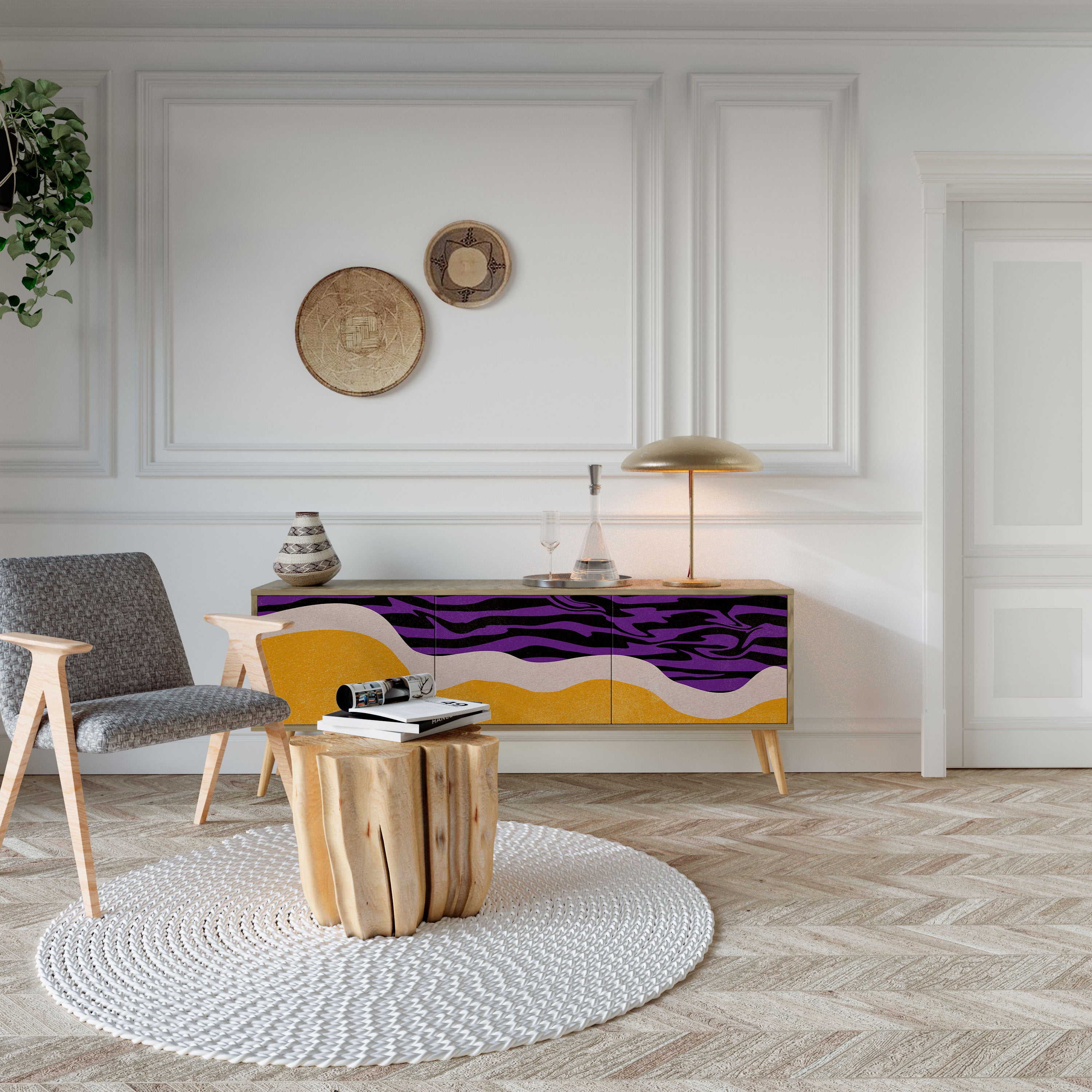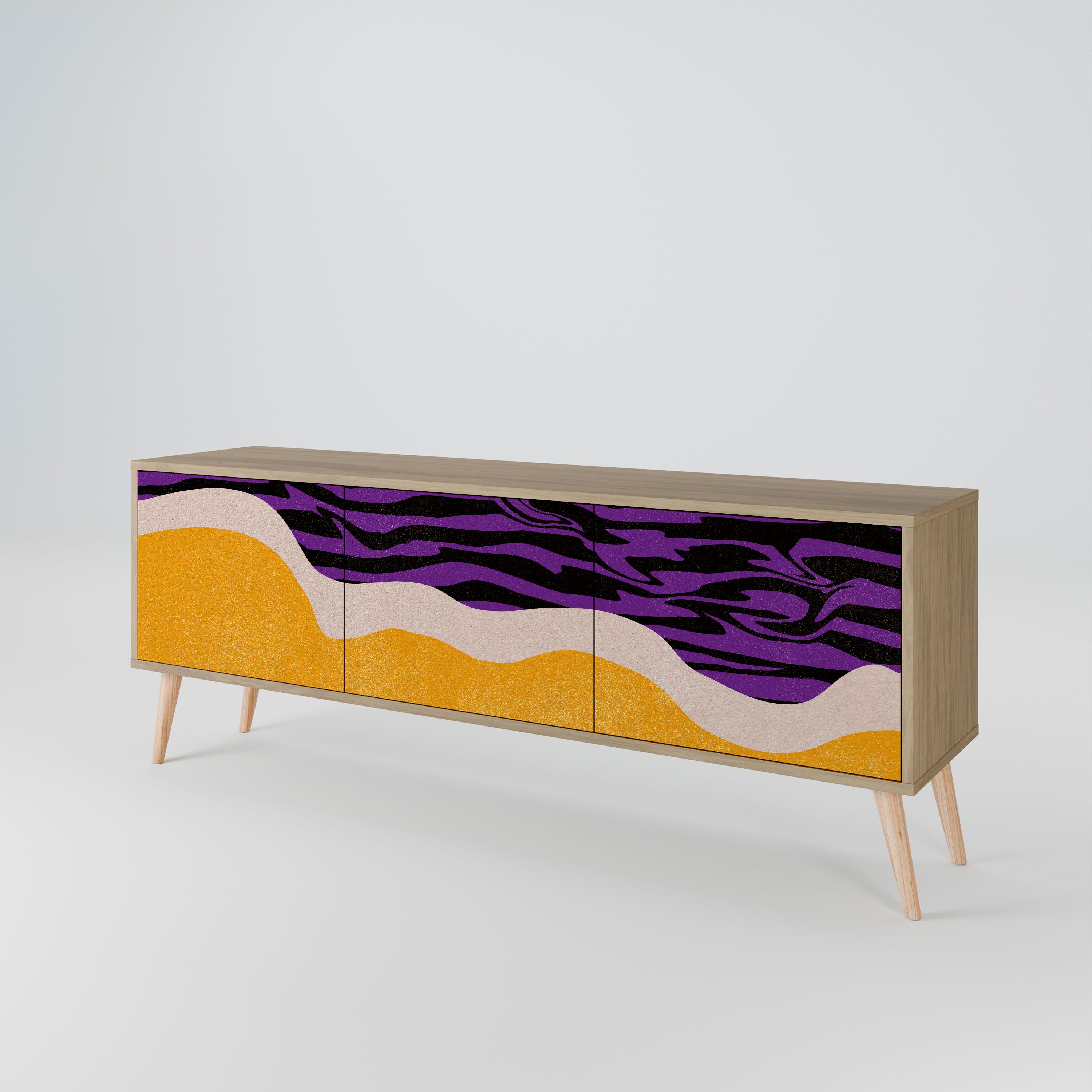 Odkryj idealne rozwiązanie do przechowywania i organizacji przestrzeni z naszą 3-drzwiową szafką pod telewizor. Wykonana z trwałych materiałów, łącząc drewniane nóżki z laminowanym korpusem, ta szafka jest zarówno stylowa, jak i funkcjonalna. Drewniane drzwiczki z atrakcyjnym nadrukiem dodają elegancji, czyniąc ją doskonałym wyborem dla każdego wnętrza.