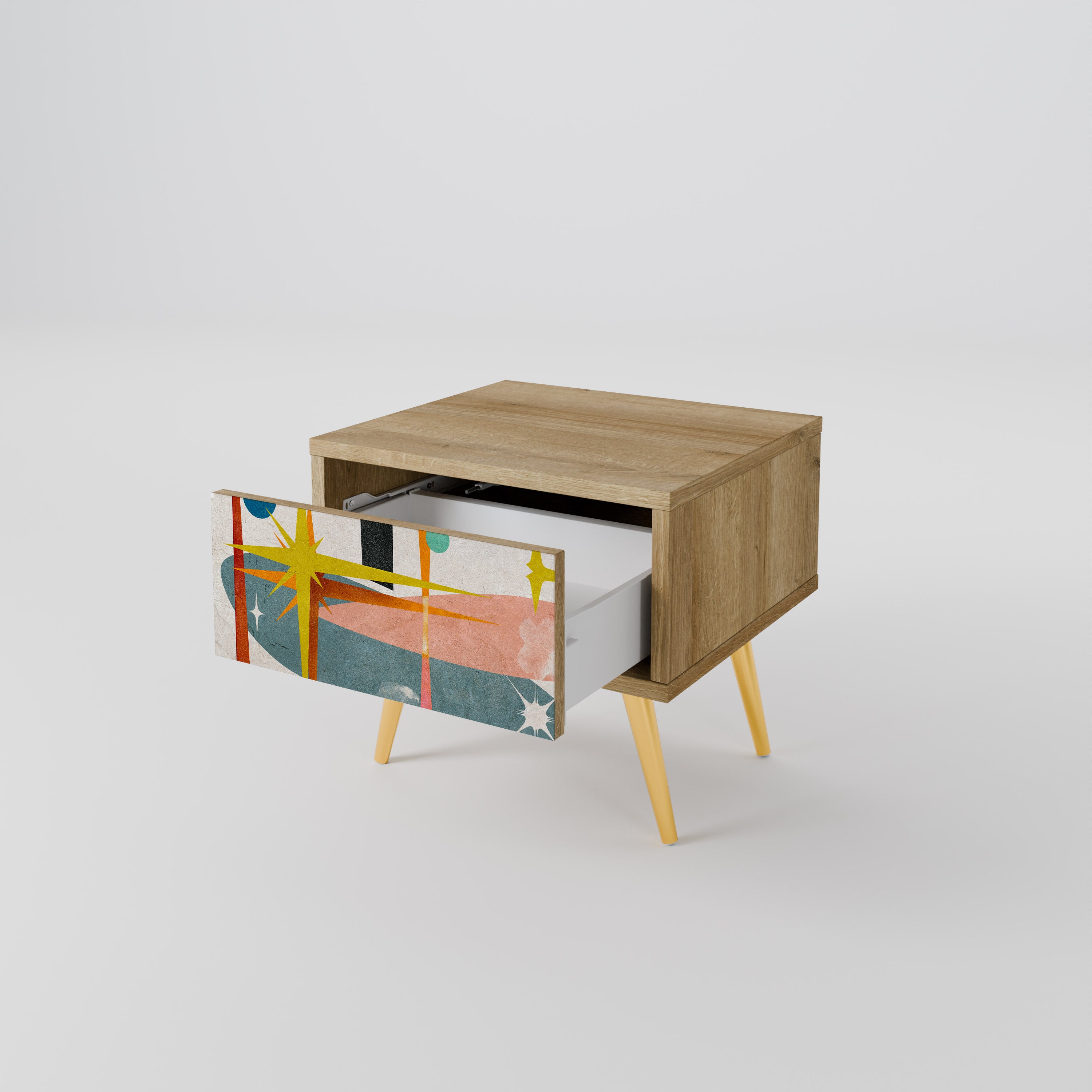 Odkryj funkcjonalność i elegancję w kompaktowym wydaniu dzięki naszej szafce nocnej z szufladą. Ten praktyczny i stylowy mebel doskonale łączy naturalne piękno drewna z nowoczesnym designem na froncie szuflady, tworząc harmonijny element każdej sypialni.