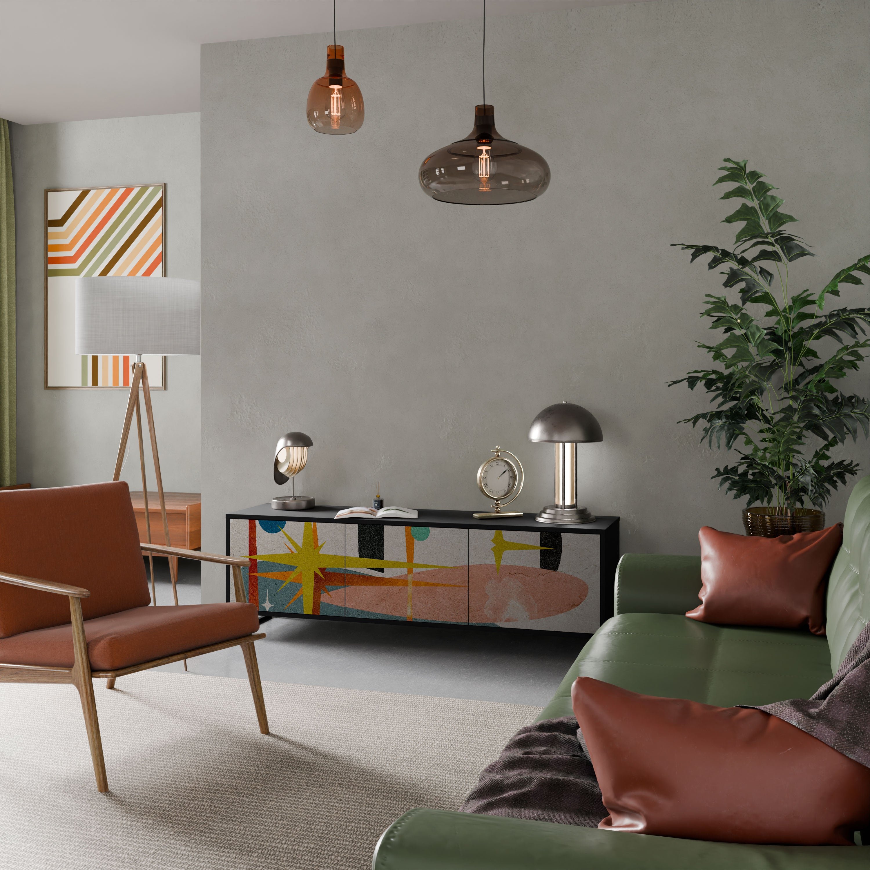 Czarny korpus szafki tworzy wyrazisty, nowoczesny akcent, który świetnie komponuje się z industrialnymi i minimalistycznymi aranżacjami. Fronty z designerskim nadrukiem dodają charakteru i niepowtarzalności, czyniąc mebel nie tylko praktycznym, ale także wyjątkowym elementem dekoracyjnym.