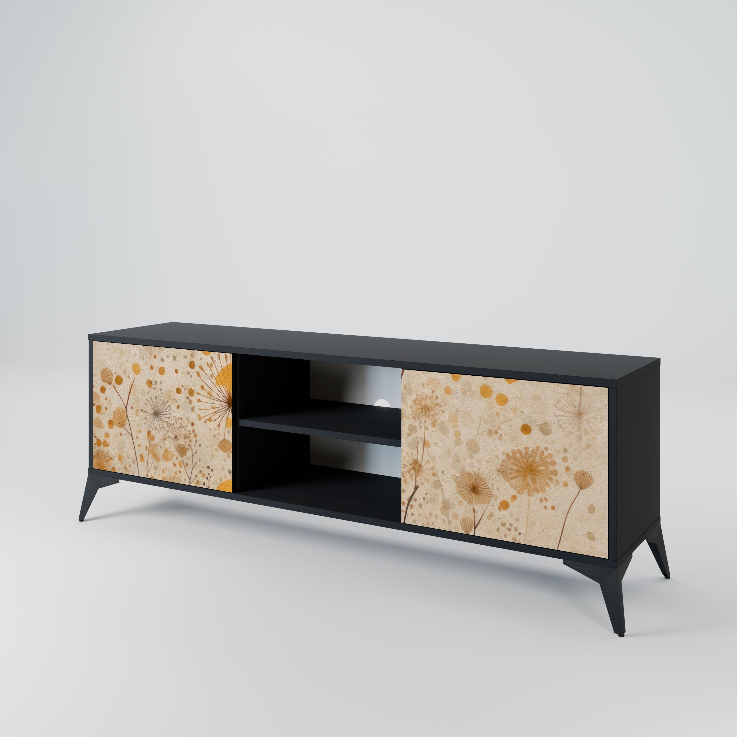 Czarny korpus nadaje szafce eleganckiego, nowoczesnego wyglądu, a fronty z wyjątkowym nadrukiem przyciągają uwagę, czyniąc ją centralnym punktem każdego pomieszczenia. Przestronne wnętrze pomieści sprzęt elektroniczny, kable, piloty i inne akcesoria, pozwalając utrzymać porządek.