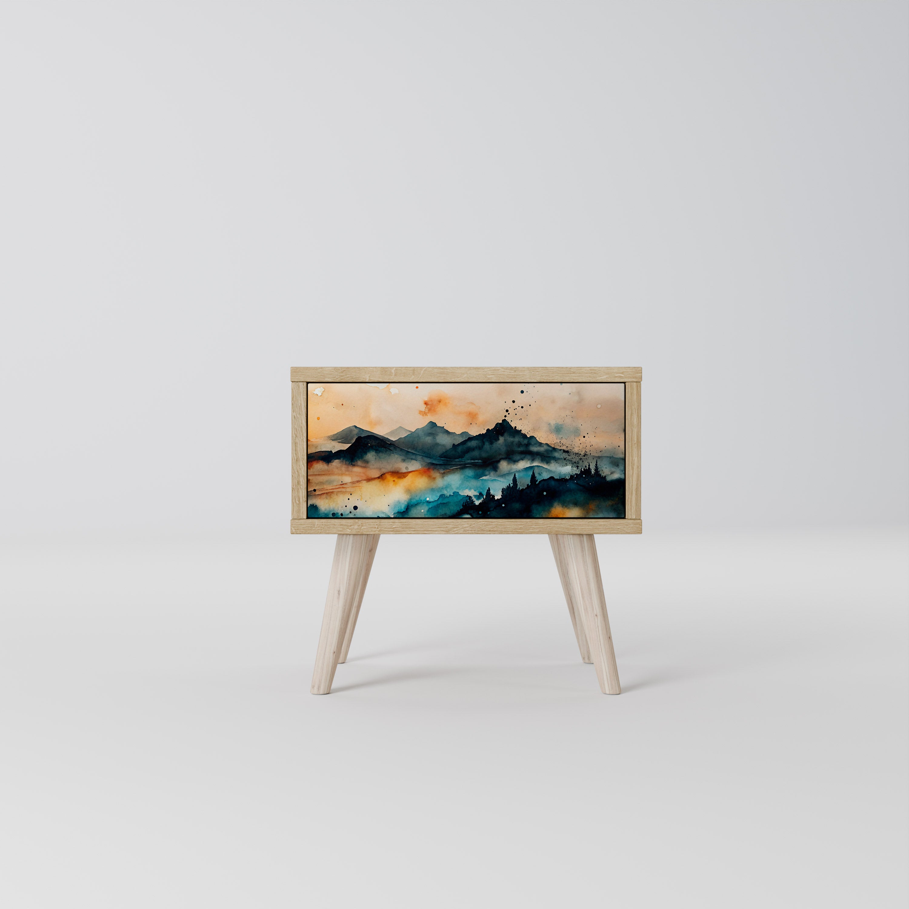 Odkryj funkcjonalność i elegancję w kompaktowym wydaniu dzięki naszej szafce nocnej z szufladą. Ten praktyczny i stylowy mebel doskonale łączy naturalne piękno drewna z nowoczesnym designem na froncie szuflady, tworząc harmonijny element każdej sypialni.
