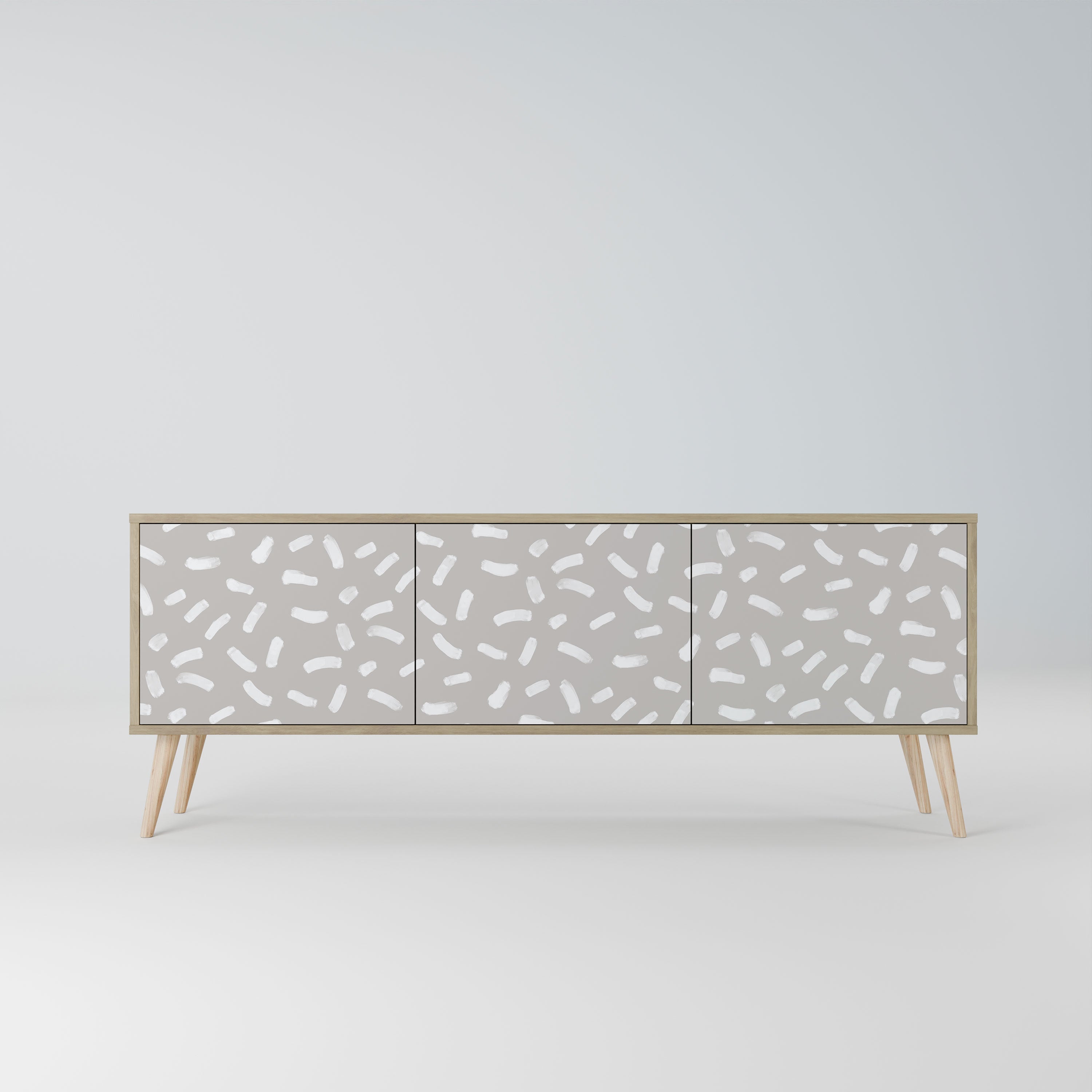 Odkryj idealne rozwiązanie do przechowywania i organizacji przestrzeni z naszą 3-drzwiową szafką pod telewizor. Wykonana z trwałych materiałów, łącząc drewniane nóżki z laminowanym korpusem, ta szafka jest zarówno stylowa, jak i funkcjonalna. Drewniane drzwiczki z atrakcyjnym nadrukiem dodają elegancji, czyniąc ją doskonałym wyborem dla każdego wnętrza.