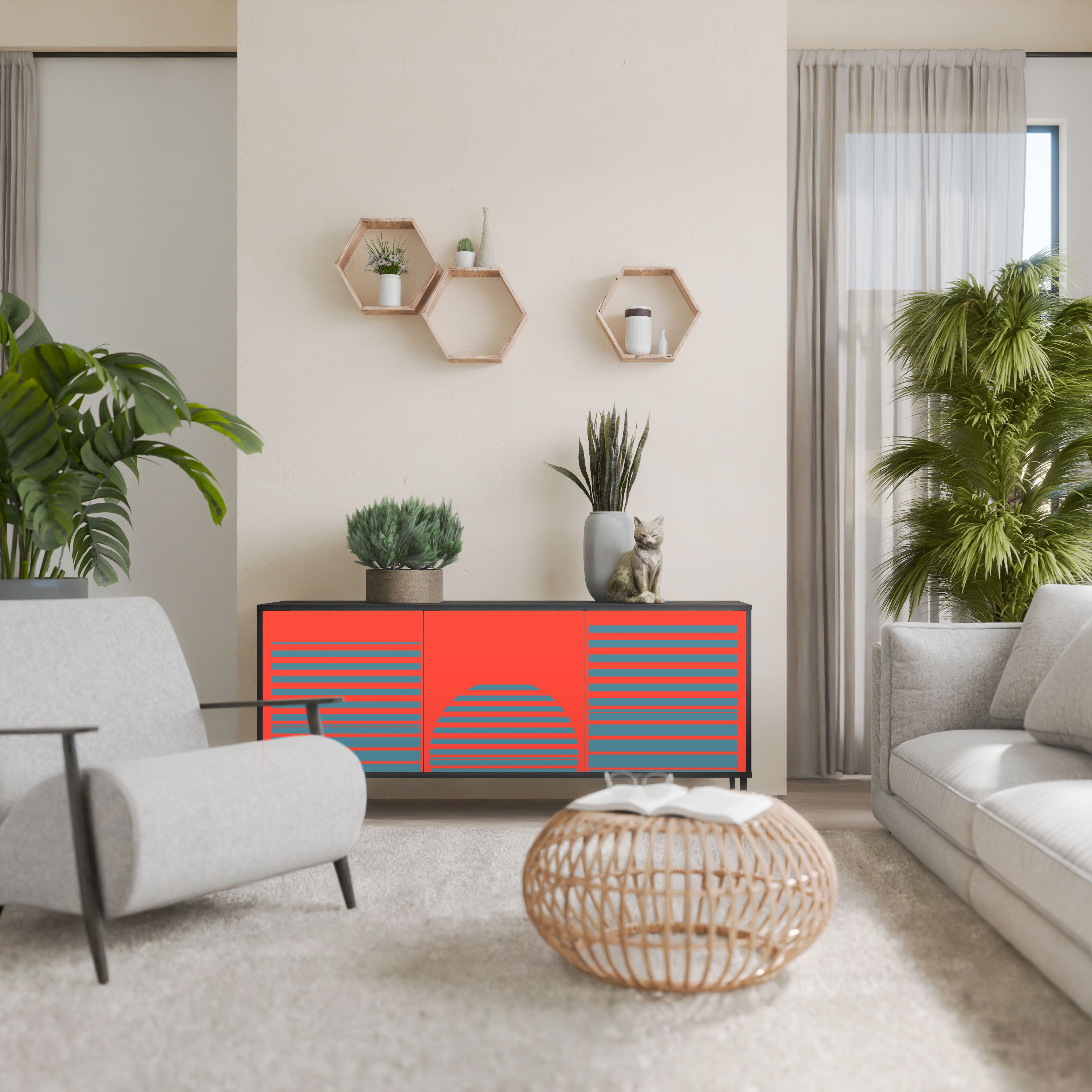 Elegancja i funkcjonalność w jednym meblu – nasza 3-drzwiowa komoda w czarnym korpusie to idealne rozwiązanie dla miłośników stylowych, nowoczesnych wnętrz. Czerń korpusu podkreśla wyrazisty charakter mebla, a fronty z unikalnym nadrukiem dodają artystycznego wyrazu. Doskonale sprawdzi się w salonie, sypialni czy gabinecie, zarówno w aranżacjach nowoczesnych, jak i industrialnych.