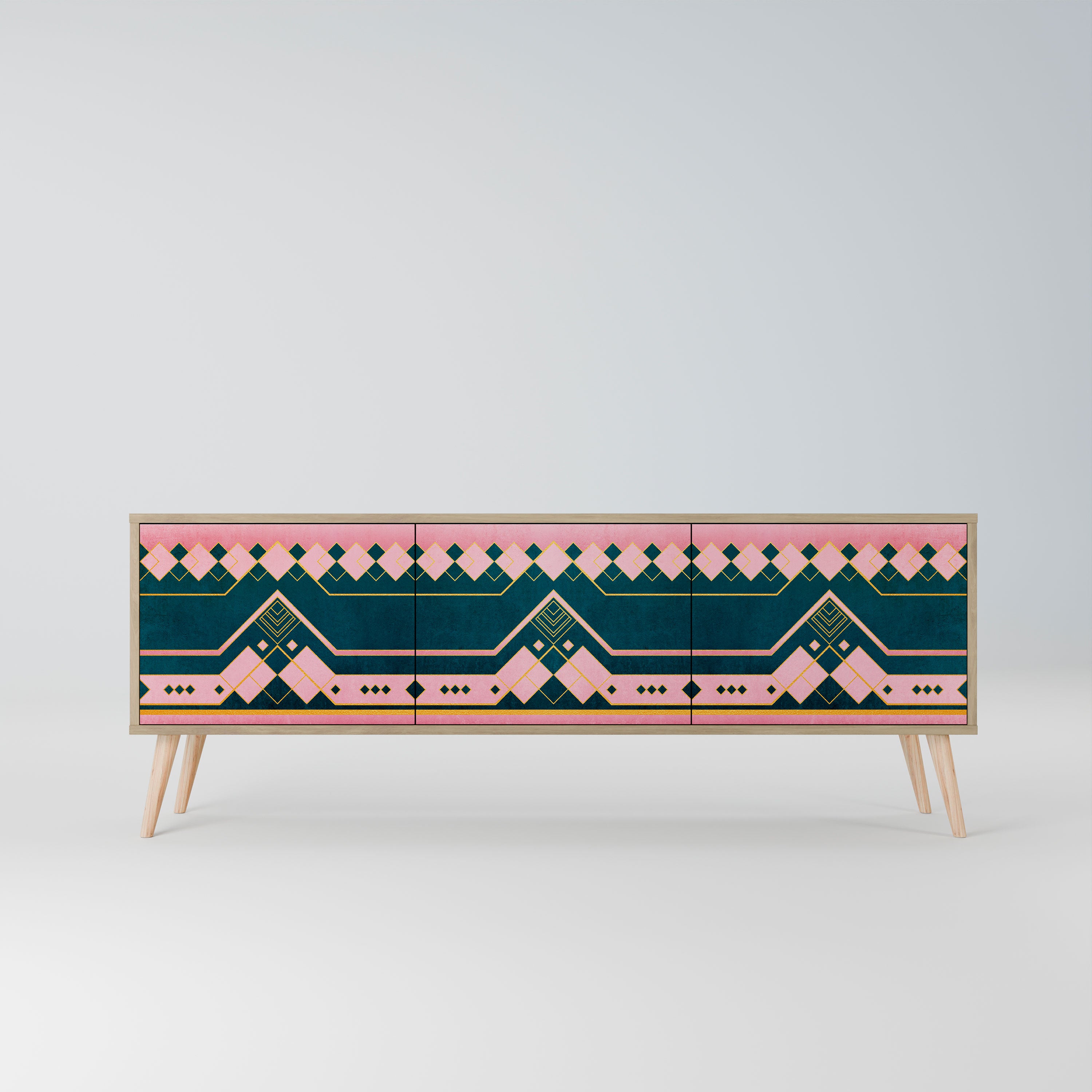 Odkryj idealne rozwiązanie do przechowywania i organizacji przestrzeni z naszą 3-drzwiową szafką pod telewizor. Wykonana z trwałych materiałów, łącząc drewniane nóżki z laminowanym korpusem, ta szafka jest zarówno stylowa, jak i funkcjonalna. Drewniane drzwiczki z atrakcyjnym nadrukiem dodają elegancji, czyniąc ją doskonałym wyborem dla każdego wnętrza.