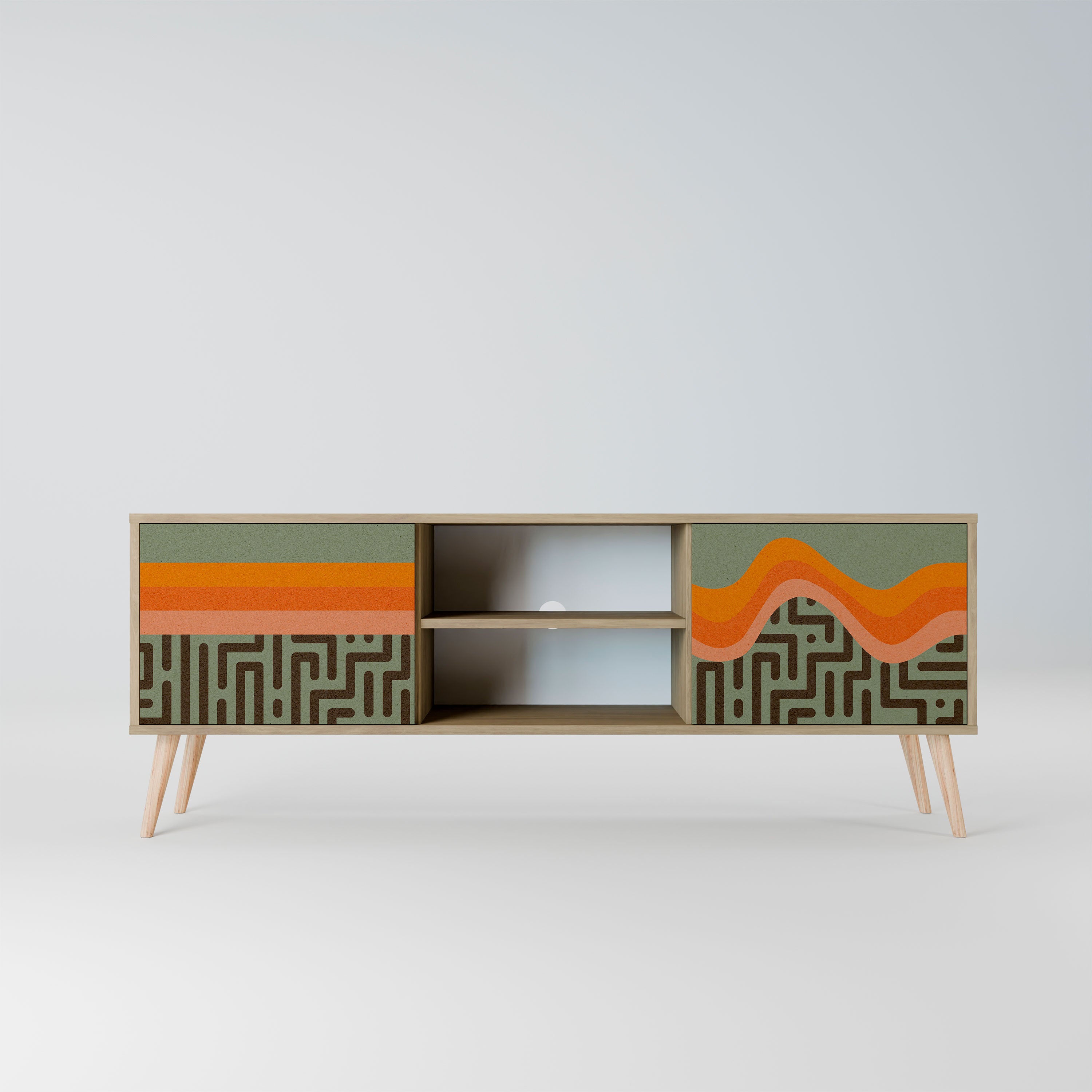 Zapraszamy do odkrycia naszej 2-drzwiowej komody pod TV, która łączy w sobie prostotę z wyjątkowym stylem. Wykonana z najwyższej jakości materiałów, ta elegancka szafka z dekorem dębu z drewnianymi drzwiczkami z nadrukiem doskonale dopełni każdy nowoczesny salon.