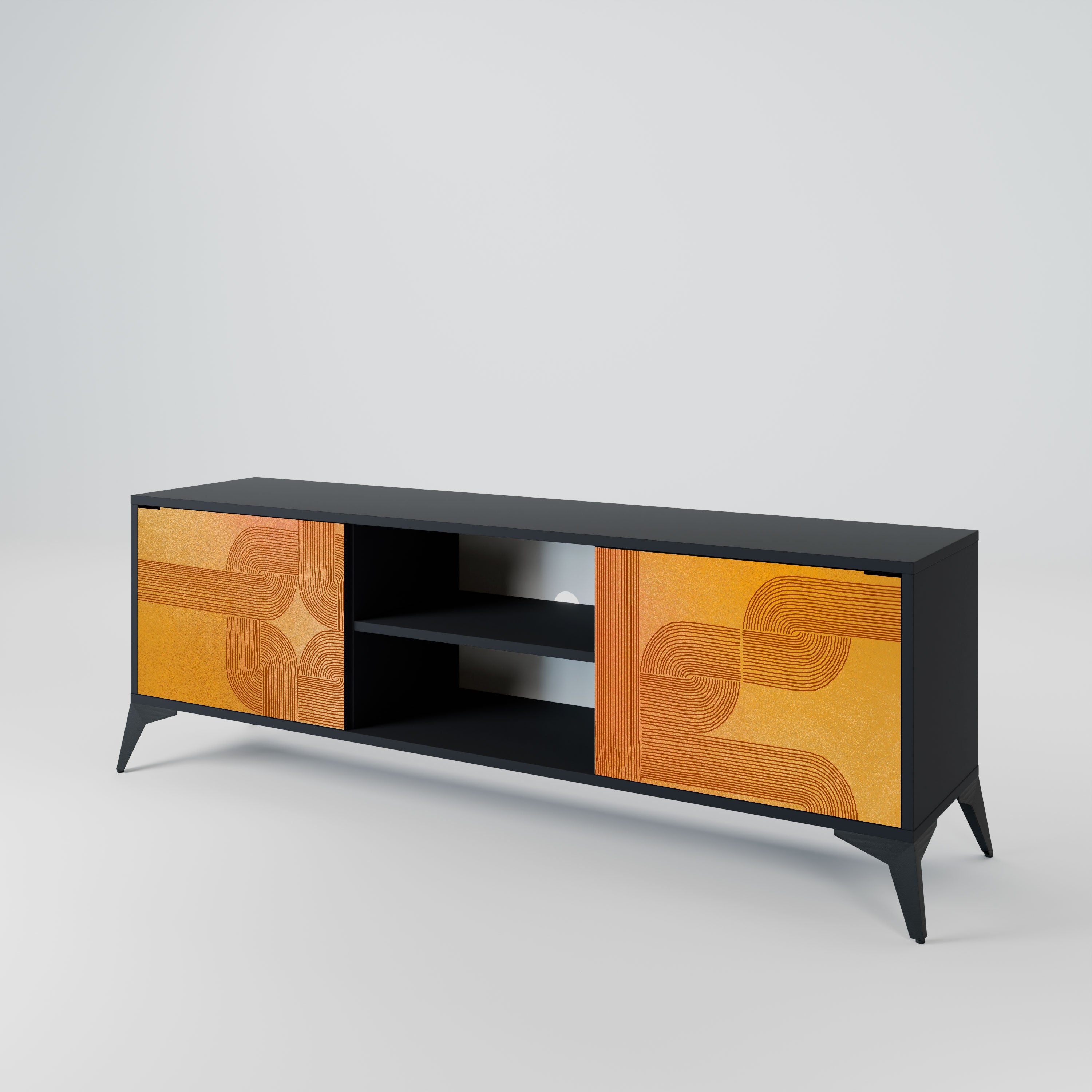 Czarny korpus nadaje szafce eleganckiego, nowoczesnego wyglądu, a fronty z wyjątkowym nadrukiem przyciągają uwagę, czyniąc ją centralnym punktem każdego pomieszczenia. Przestronne wnętrze pomieści sprzęt elektroniczny, kable, piloty i inne akcesoria, pozwalając utrzymać porządek.
