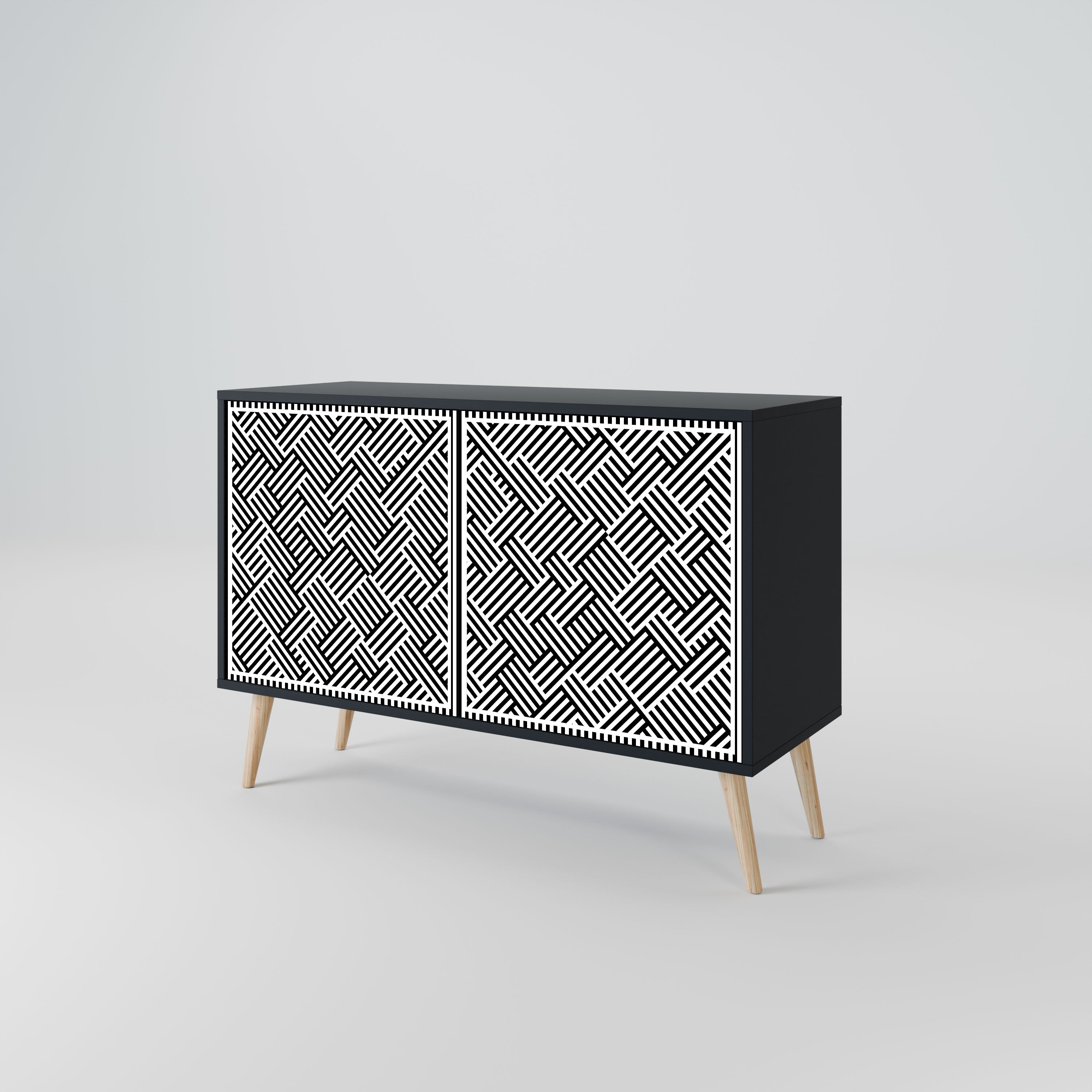 Elegancja i funkcjonalność w jednym meblu – nasza 2-drzwiowa komoda z czarnym korpusem to idealne rozwiązanie dla miłośników stylowych, nowoczesnych wnętrz. Czerń korpusu podkreśla wyrazisty charakter mebla, a fronty z unikalnym nadrukiem dodają artystycznego wyrazu. Doskonale sprawdzi się w salonie, sypialni czy gabinecie, zarówno w aranżacjach nowoczesnych, jak i industrialnych.