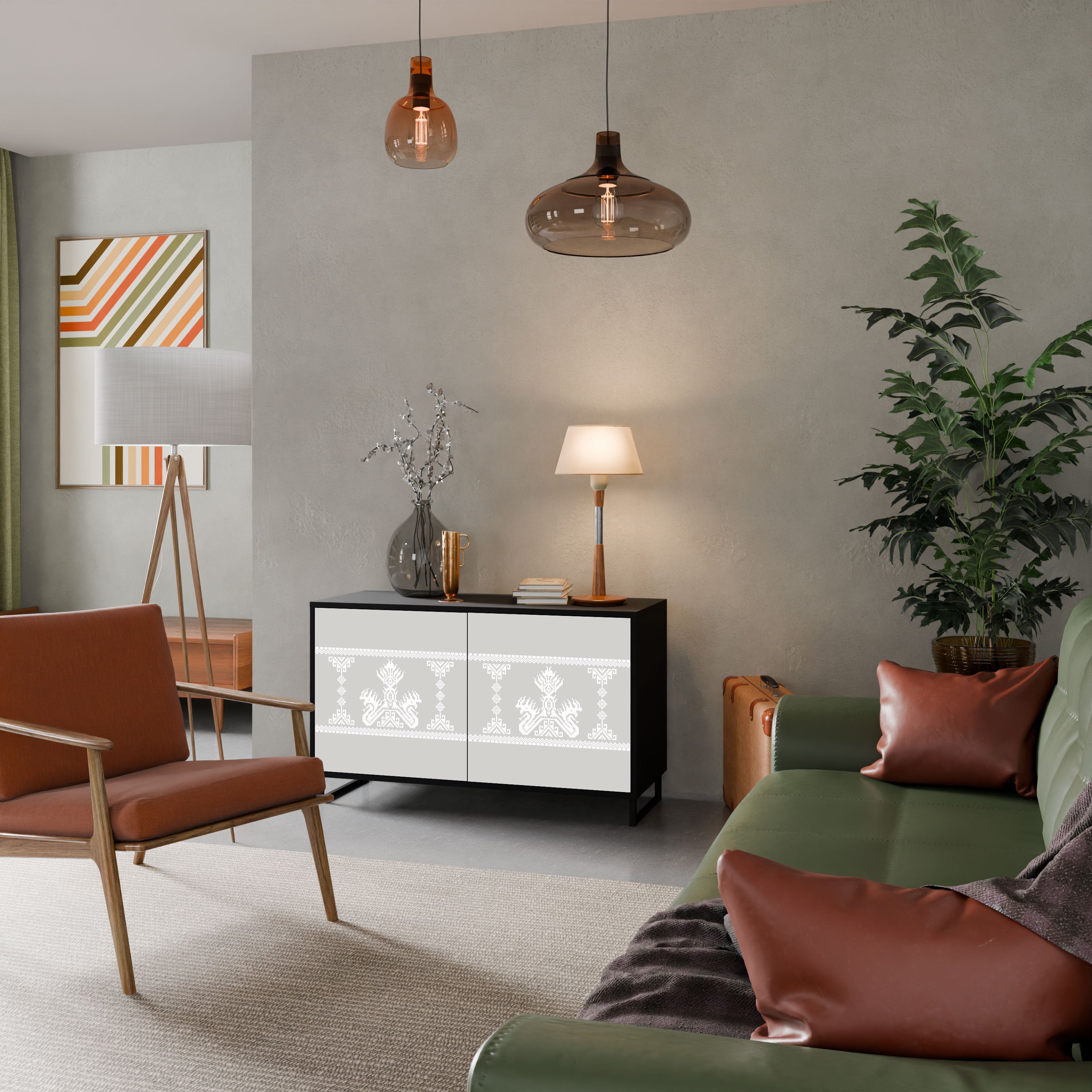 Elegancja i funkcjonalność w jednym meblu – nasza 2-drzwiowa komoda z czarnym korpusem to idealne rozwiązanie dla miłośników stylowych, nowoczesnych wnętrz. Czerń korpusu podkreśla wyrazisty charakter mebla, a fronty z unikalnym nadrukiem dodają artystycznego wyrazu. Doskonale sprawdzi się w salonie, sypialni czy gabinecie, zarówno w aranżacjach nowoczesnych, jak i industrialnych.