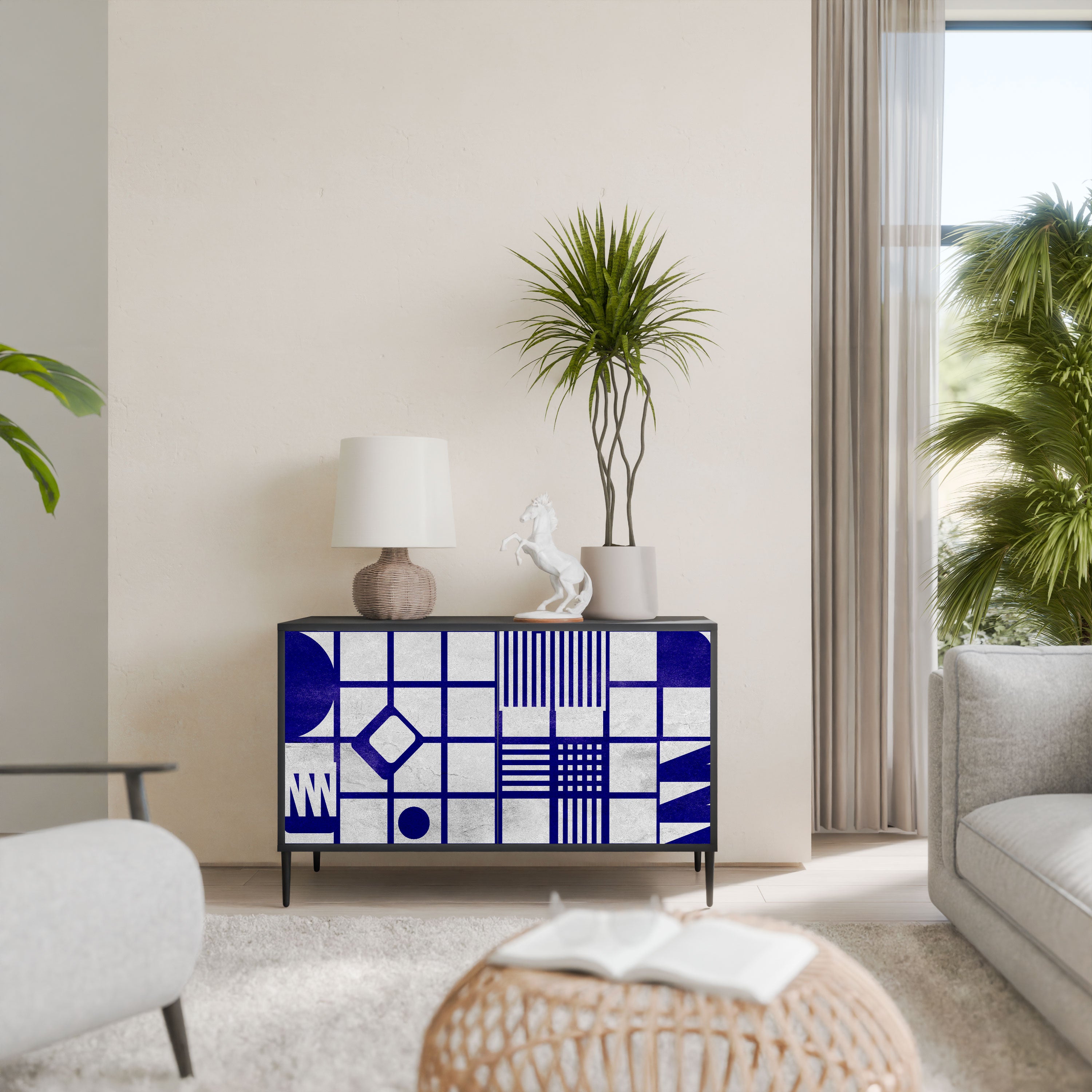 Elegancja i funkcjonalność w jednym meblu – nasza 2-drzwiowa komoda z czarnym korpusem to idealne rozwiązanie dla miłośników stylowych, nowoczesnych wnętrz. Czerń korpusu podkreśla wyrazisty charakter mebla, a fronty z unikalnym nadrukiem dodają artystycznego wyrazu. Doskonale sprawdzi się w salonie, sypialni czy gabinecie, zarówno w aranżacjach nowoczesnych, jak i industrialnych.