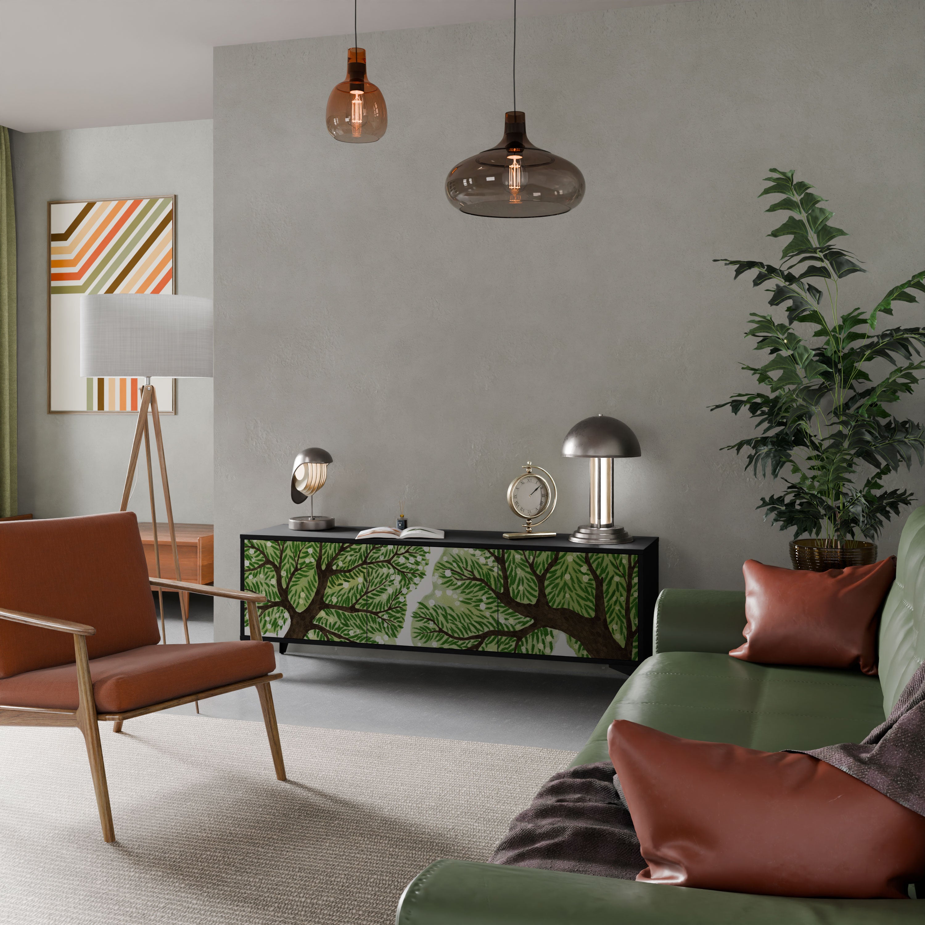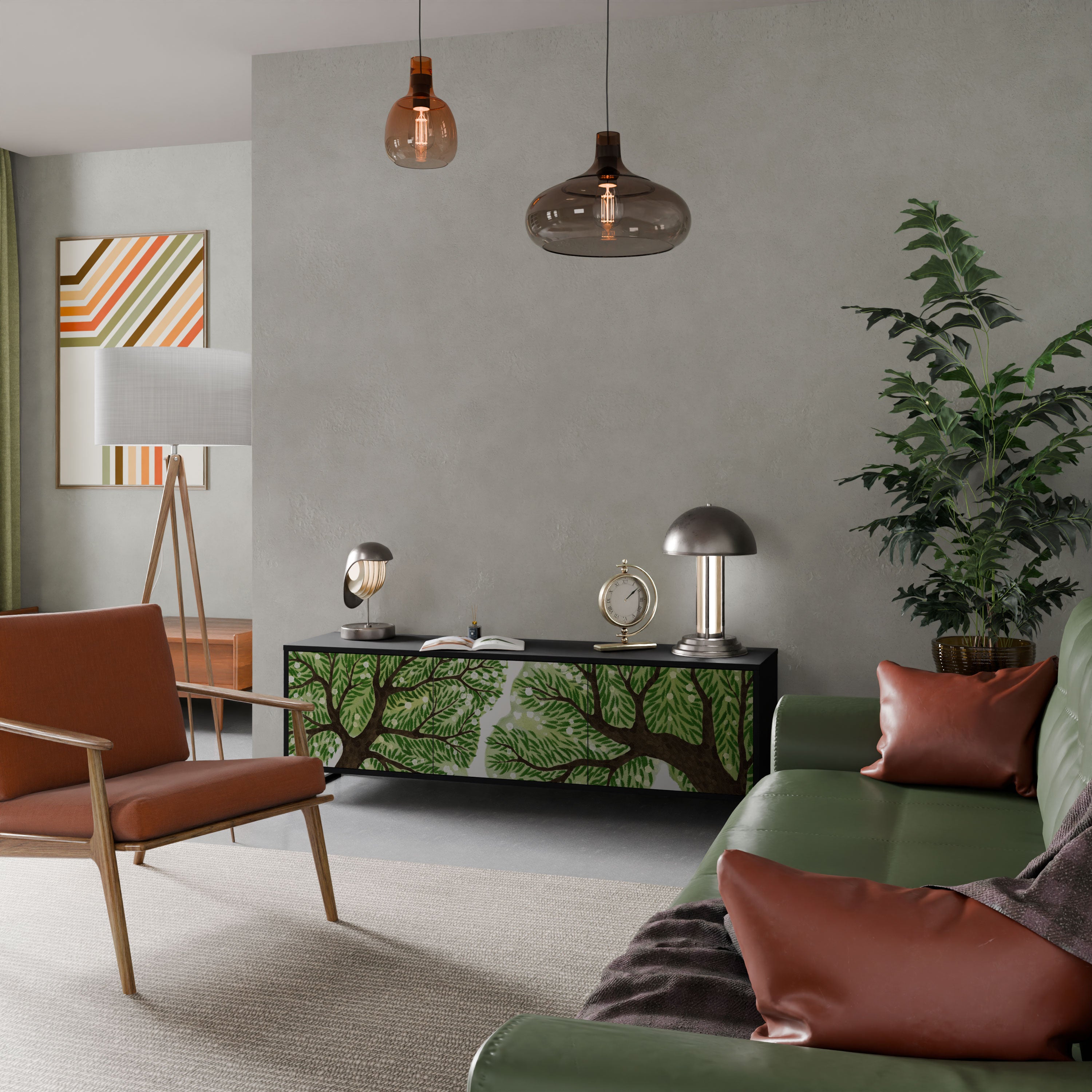 Czarny korpus szafki tworzy wyrazisty, nowoczesny akcent, który świetnie komponuje się z industrialnymi i minimalistycznymi aranżacjami. Fronty z designerskim nadrukiem dodają charakteru i niepowtarzalności, czyniąc mebel nie tylko praktycznym, ale także wyjątkowym elementem dekoracyjnym.